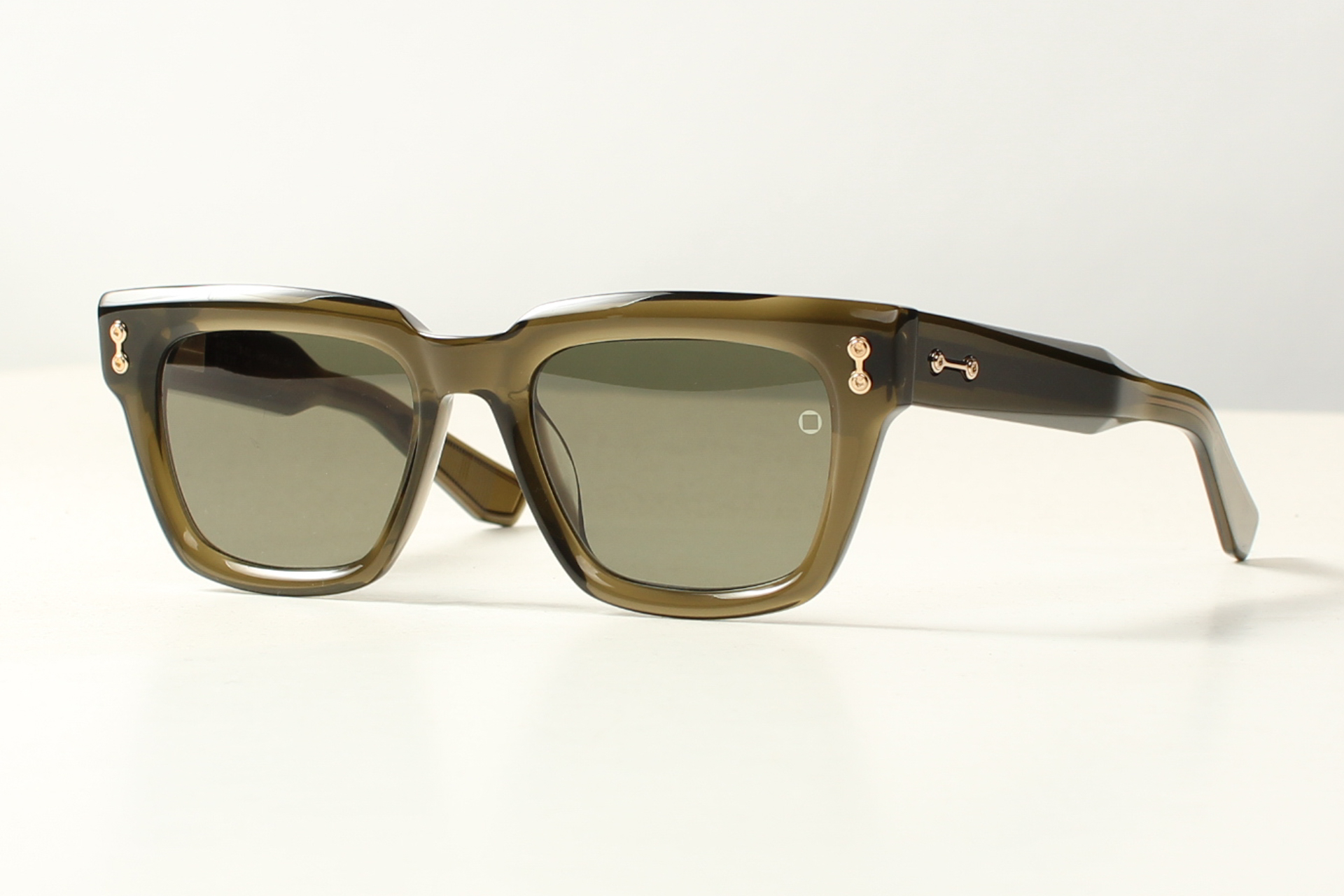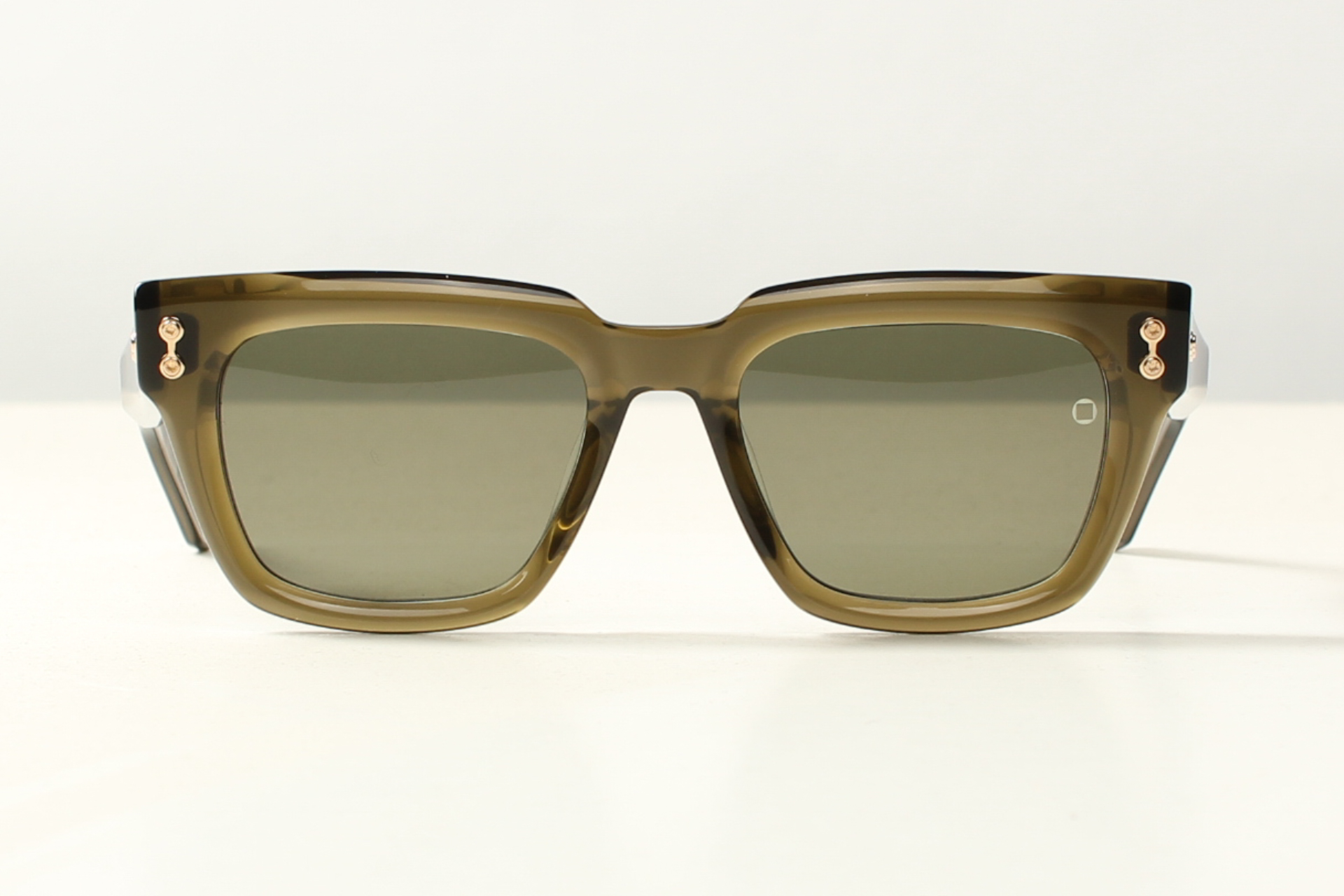Olijf groen Japans acetaat zonnebril van Akoni met groene ontspiegelde glazen Stevig montuur van de allerhoogste kwaliteit.