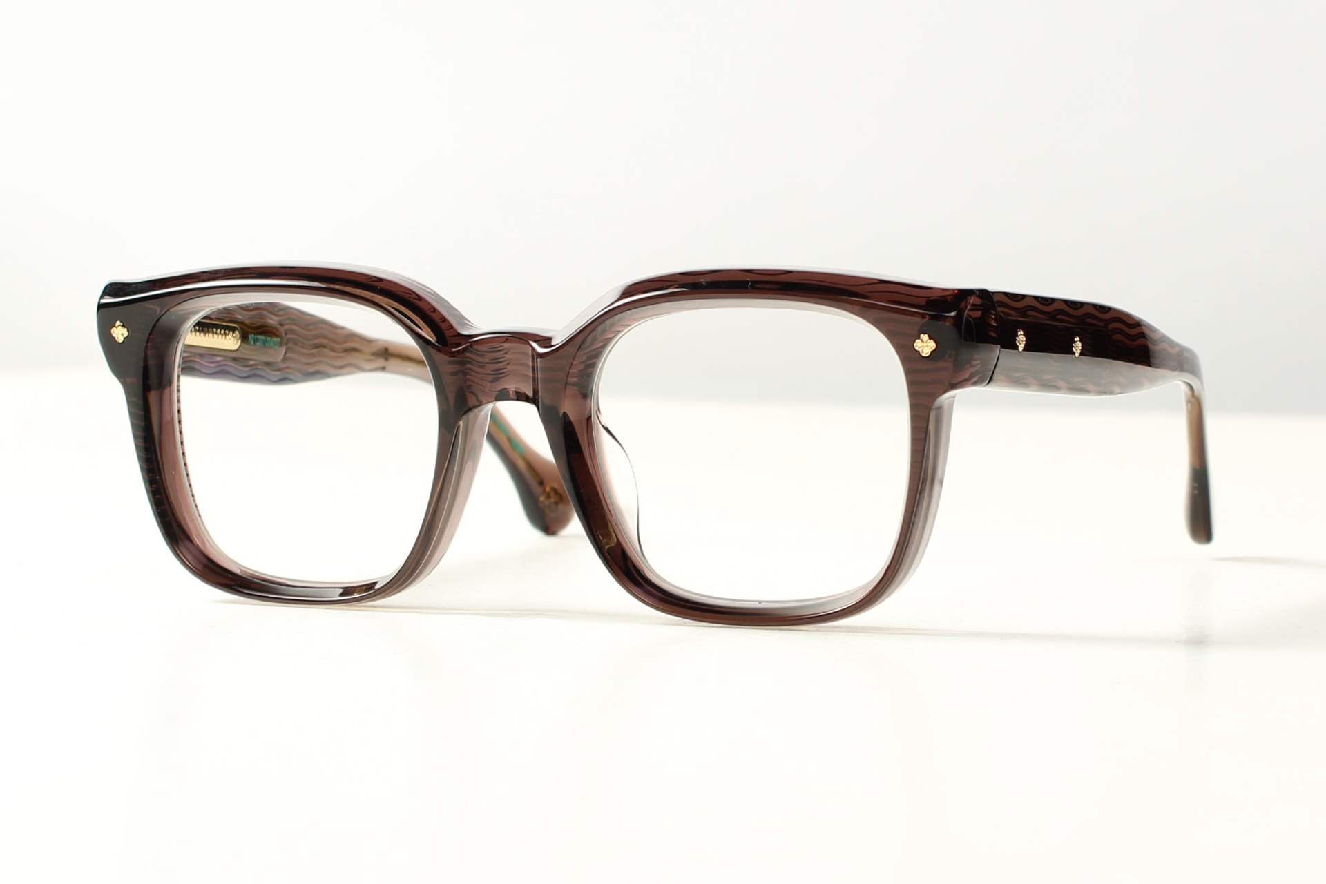 Barcelunettes Eyewear Model Quijano, zeer fraai bewerkt acetaat met diep facet en bijzondere details. Geproduceerd in kleine oplage.