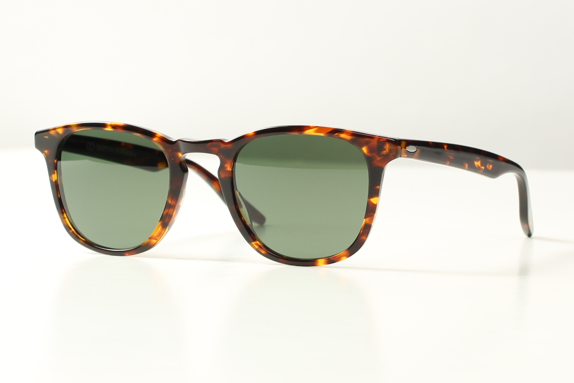 Barton Perreira, model Dino. Vintage design bril in gevlamd havanna acetaat. Met grijs-groene glazen.