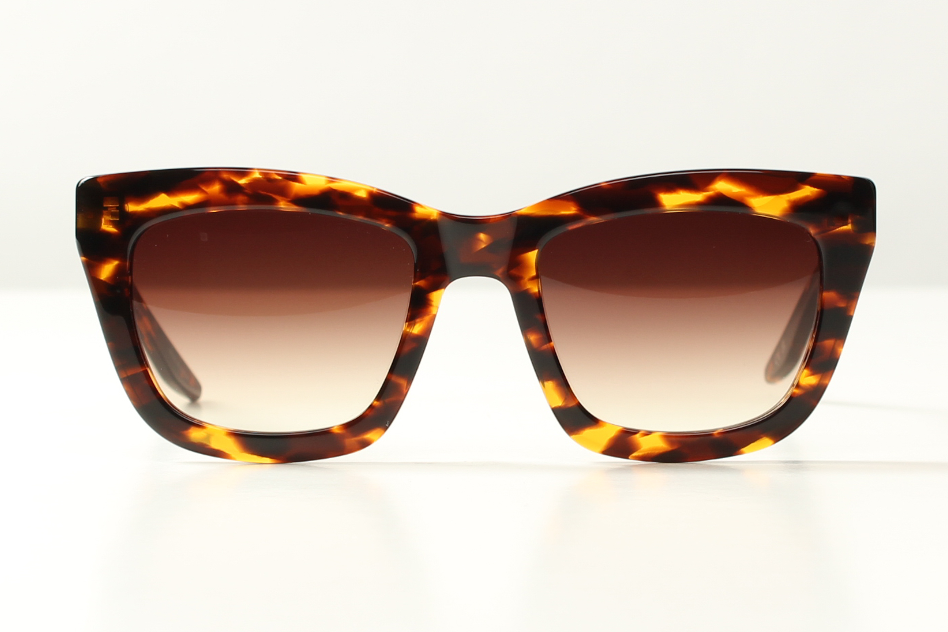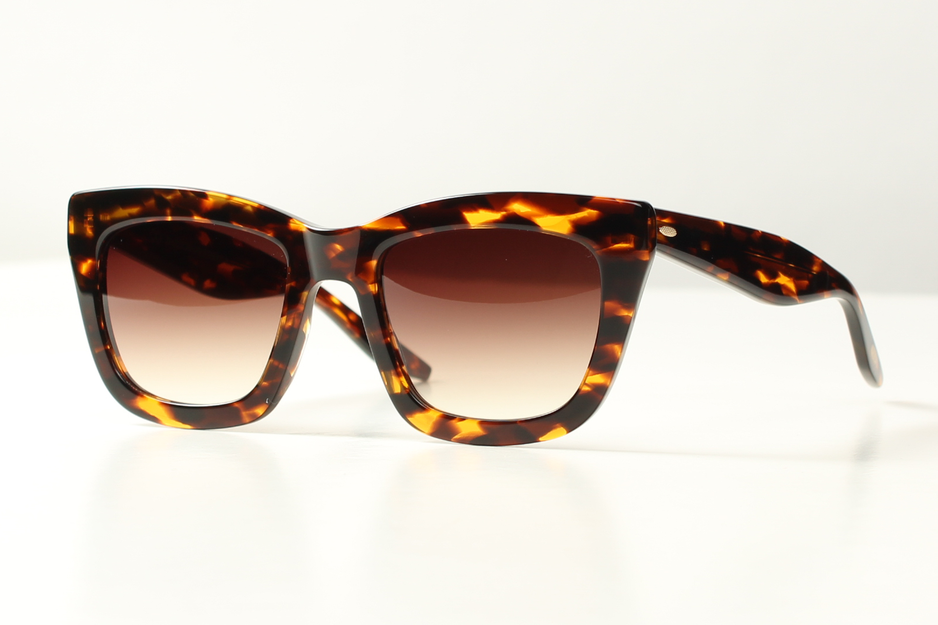 Barton Perreira, model Kateri. Vlindervormige zonnebril in stijlvol glanzend gepolijst havanna acetaat met bruine degrade glazen.