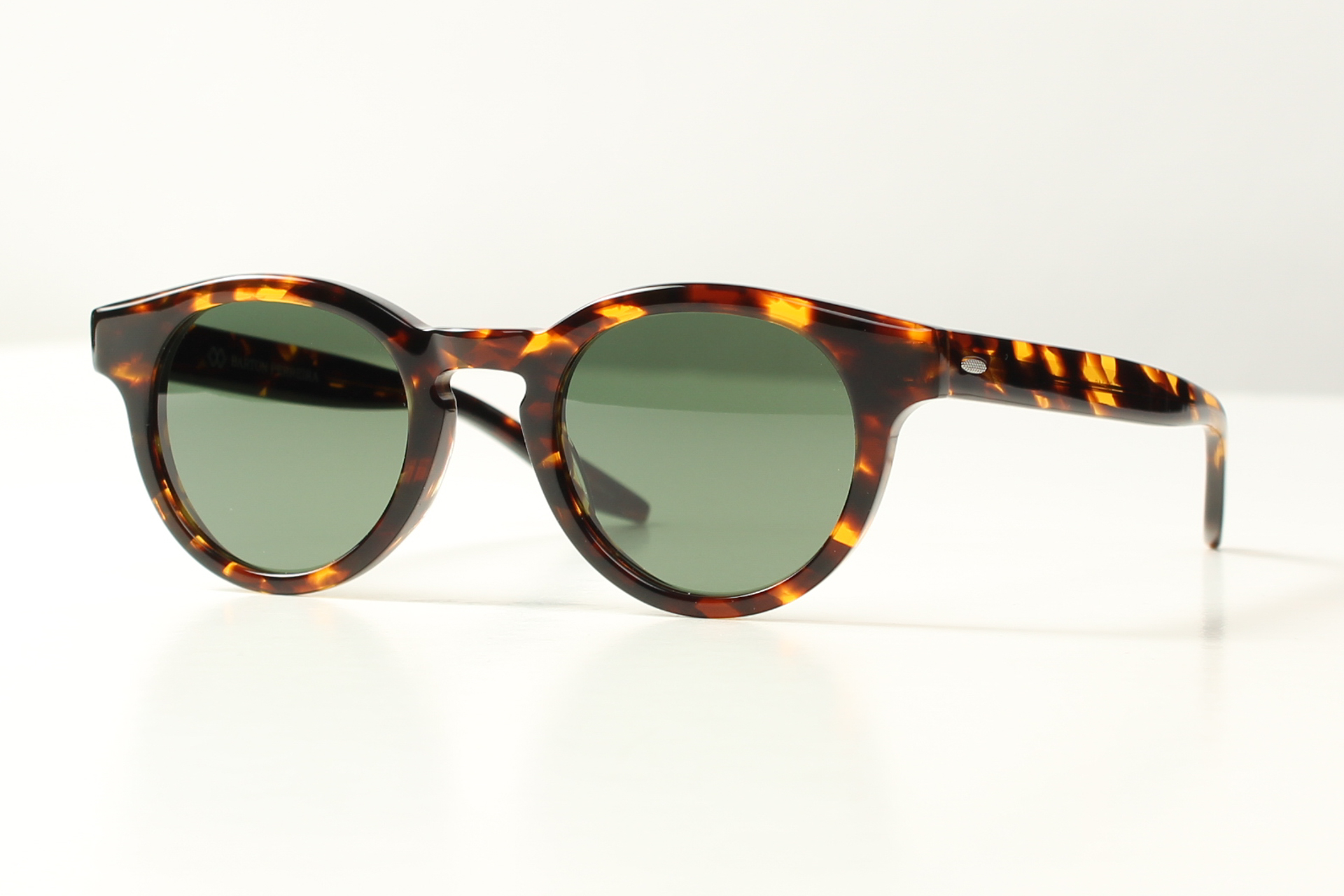 Barton Perreira, model Oxford. Vintage design bril in gevlamd havanna acetaat. Met grijs-groene glazen.