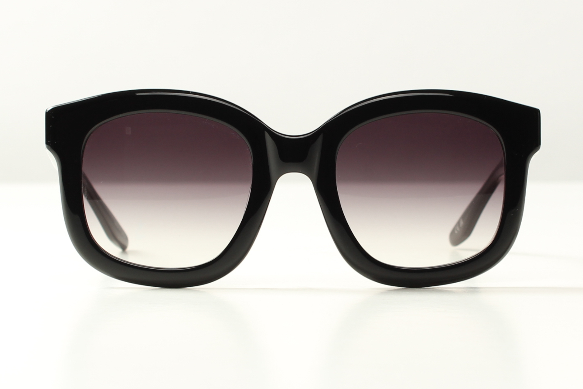 Zonnebril van Barton Perreira, model Quannah. Glanzend stijlvol zwart acetaat met grijze degrade glazen.