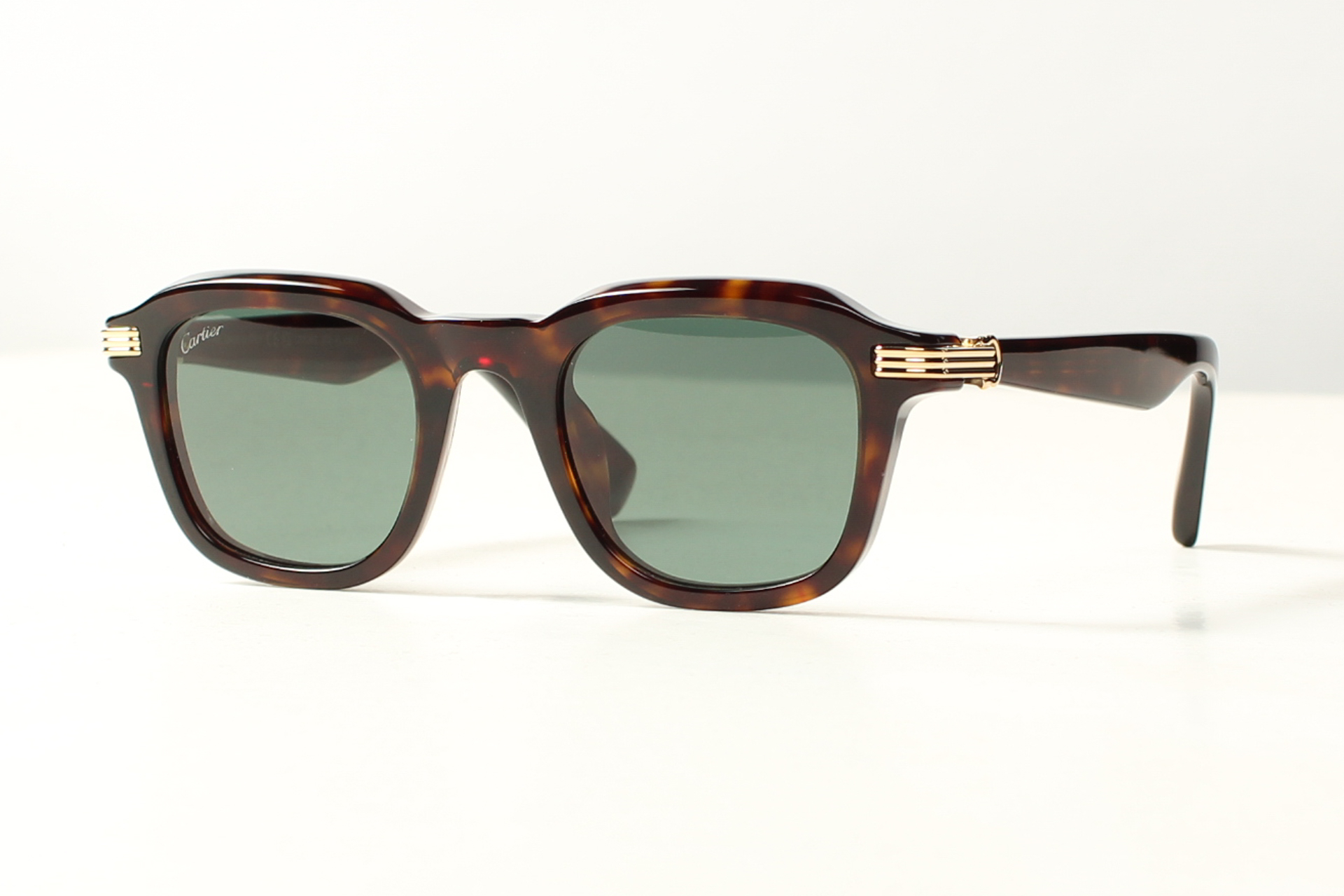 C de Cartier zonnebril. Stoer en elegant donker havanna acetaat montuur met grijs groene glazen.