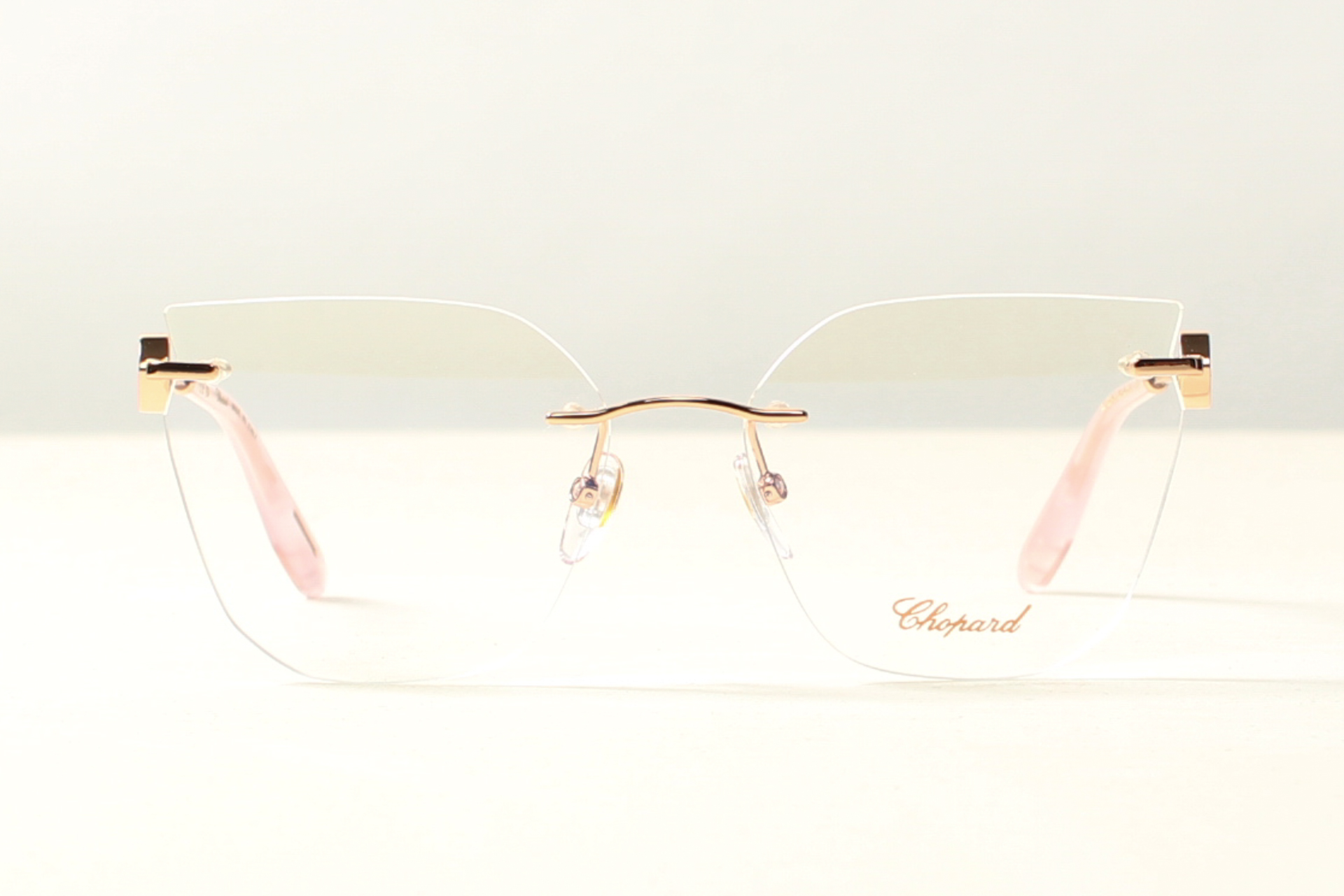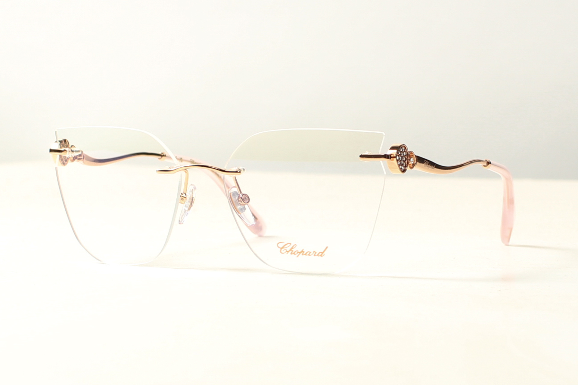 Chopard randloos montuur, elegant en stijlvol met een luxueuze uitstraling. Uitgevoerd in rose goud double.
