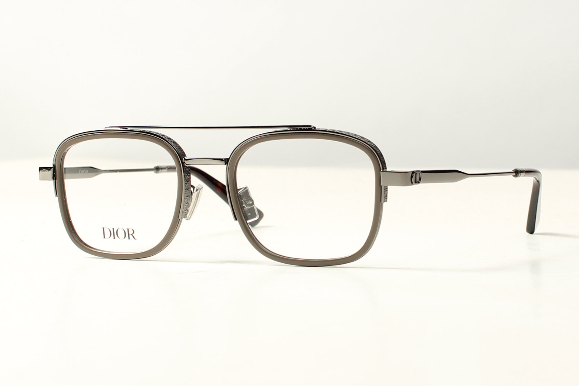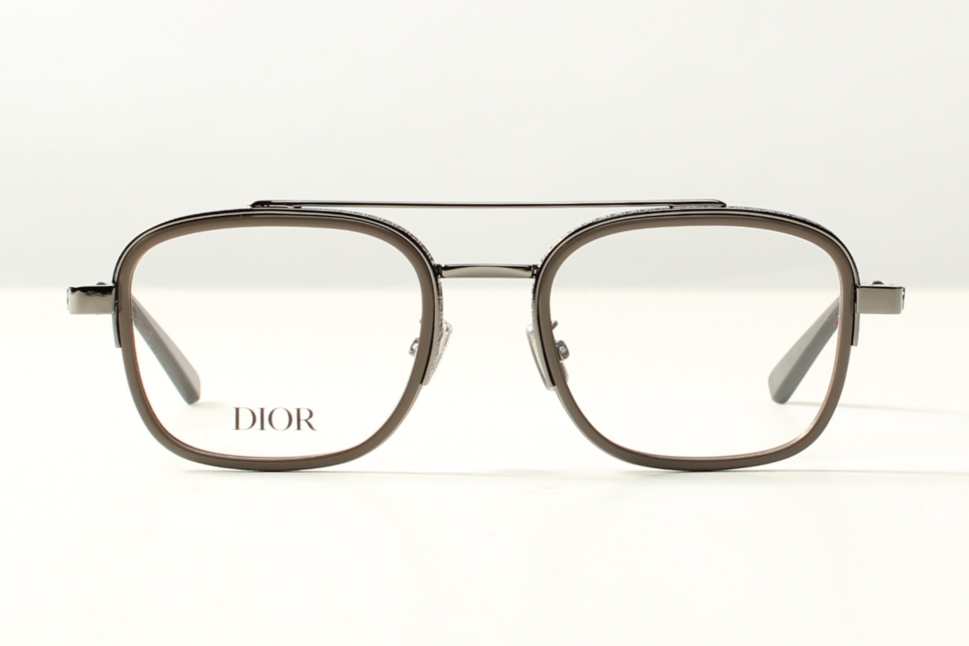 Dior montuur in donker zilver met acetaat randen rondom de glazen. LET OP, dit is een speciale webshop prijs.