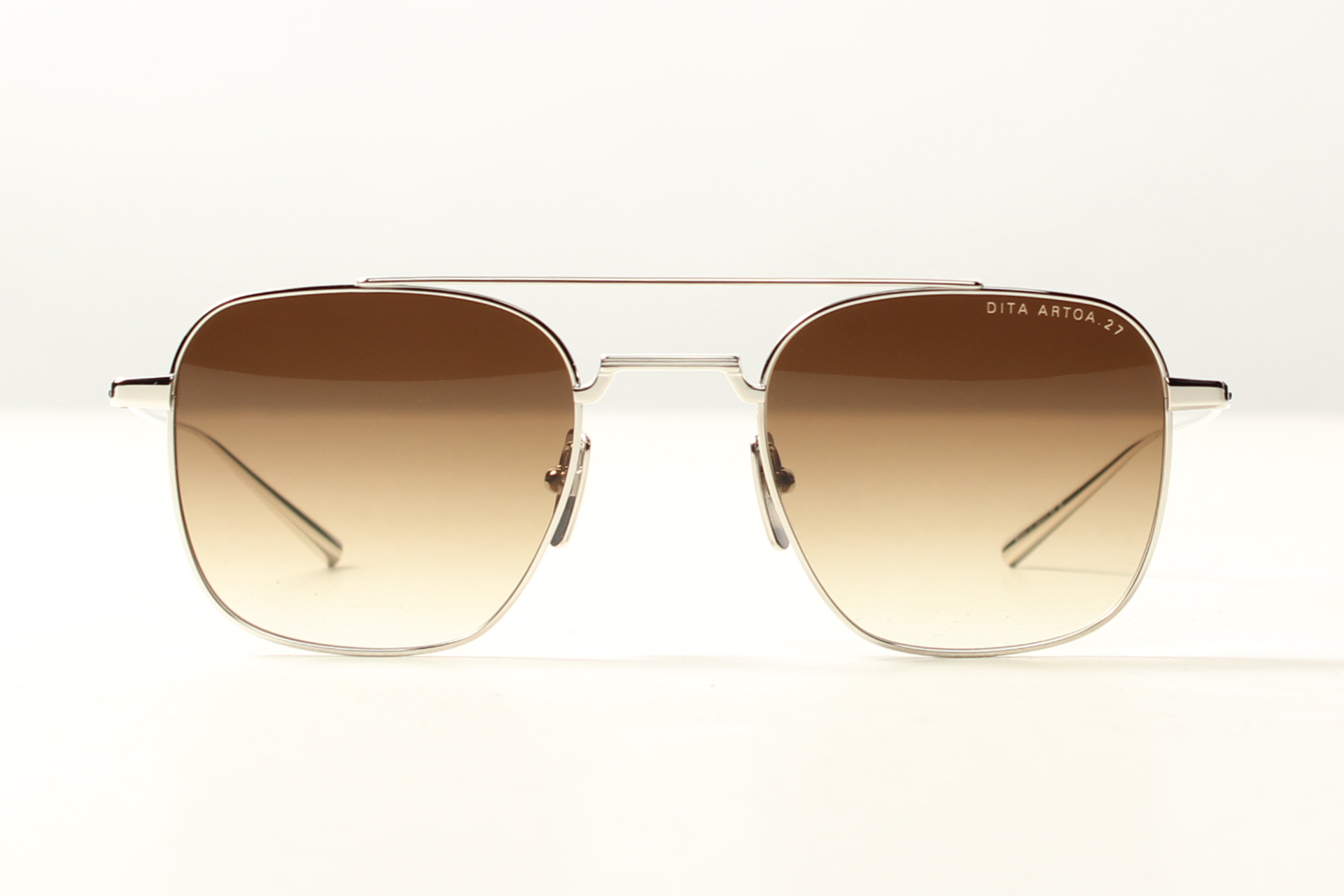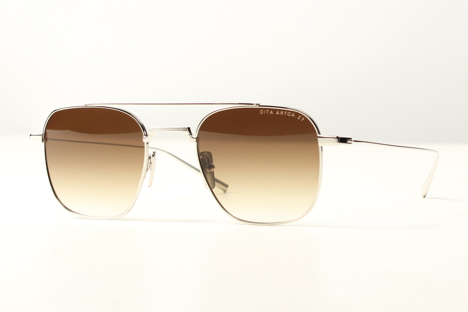 Zilver metalen Dita zonnebril met bruin degrade glazen.