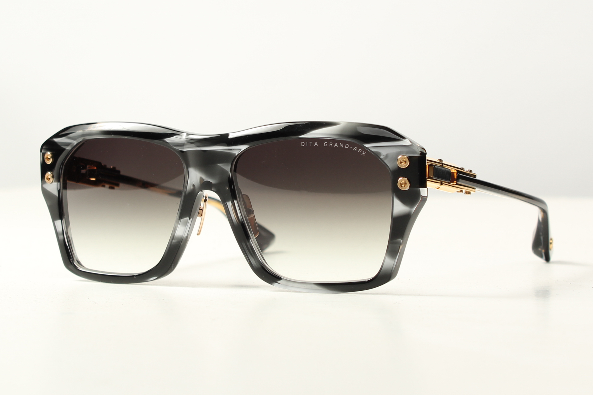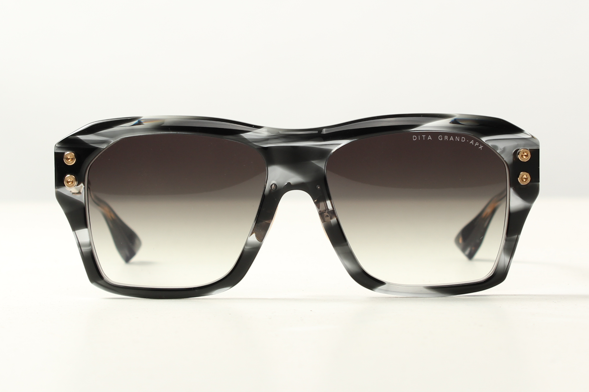 Dita zonnebril, model Grand-APX fraai gevlamd grijs acetaat met grijs degrade glazen.