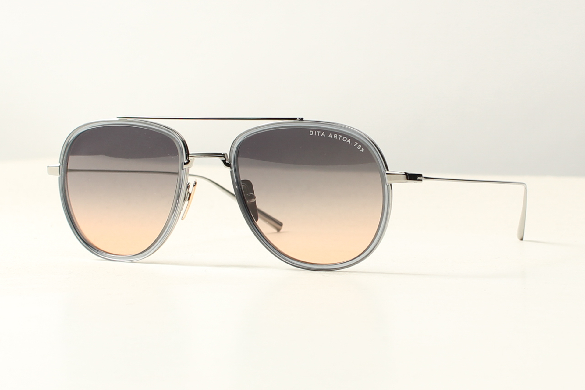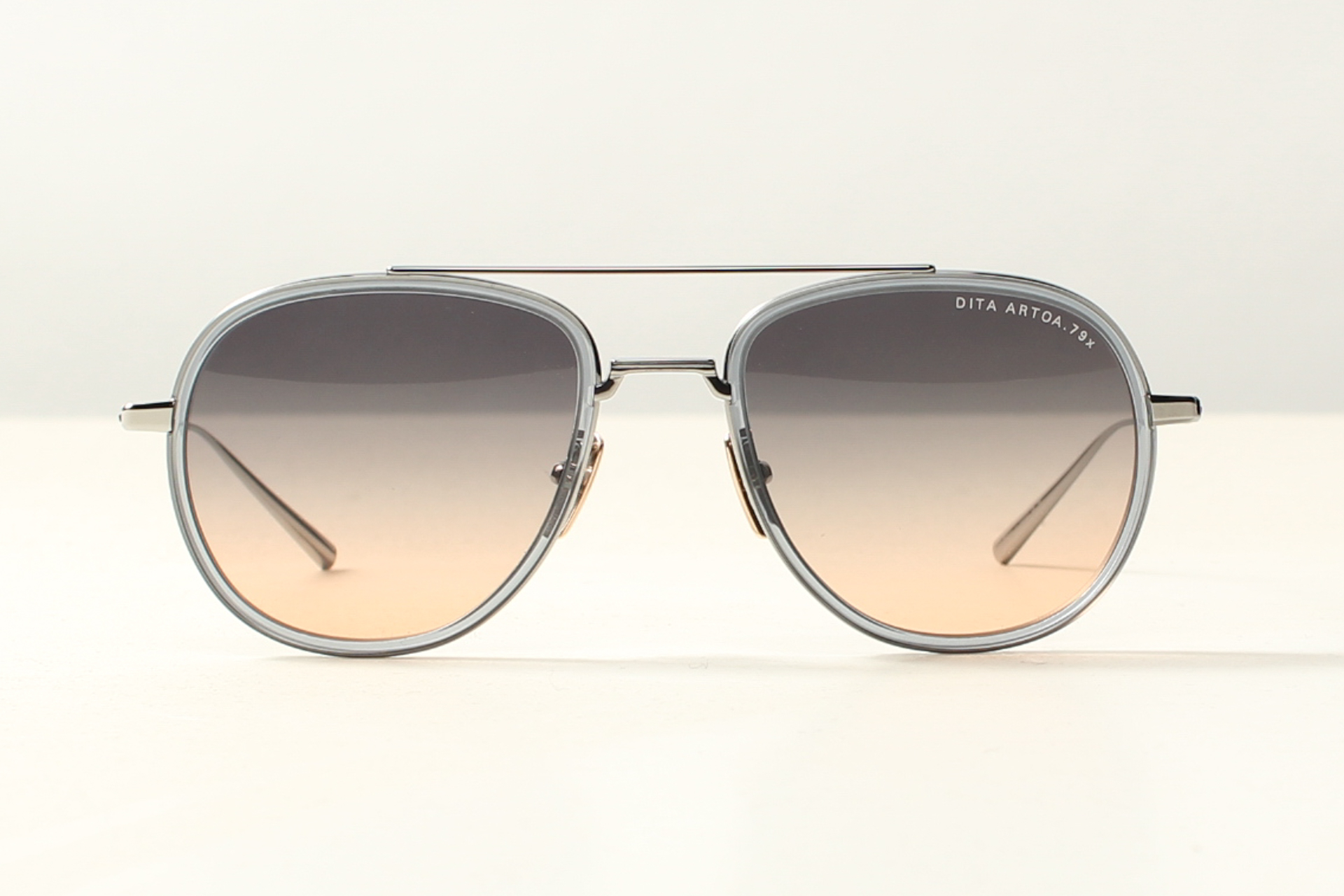 Zonnebril van Dita model Artoa.79X met grijs acetaat randen in pilot-look en grijs-bruin degrade glazen