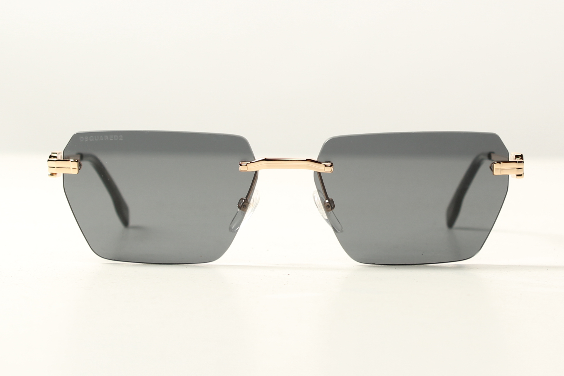 Randloze SDQUARED2 zonnebril in goud double met grijze glazen.