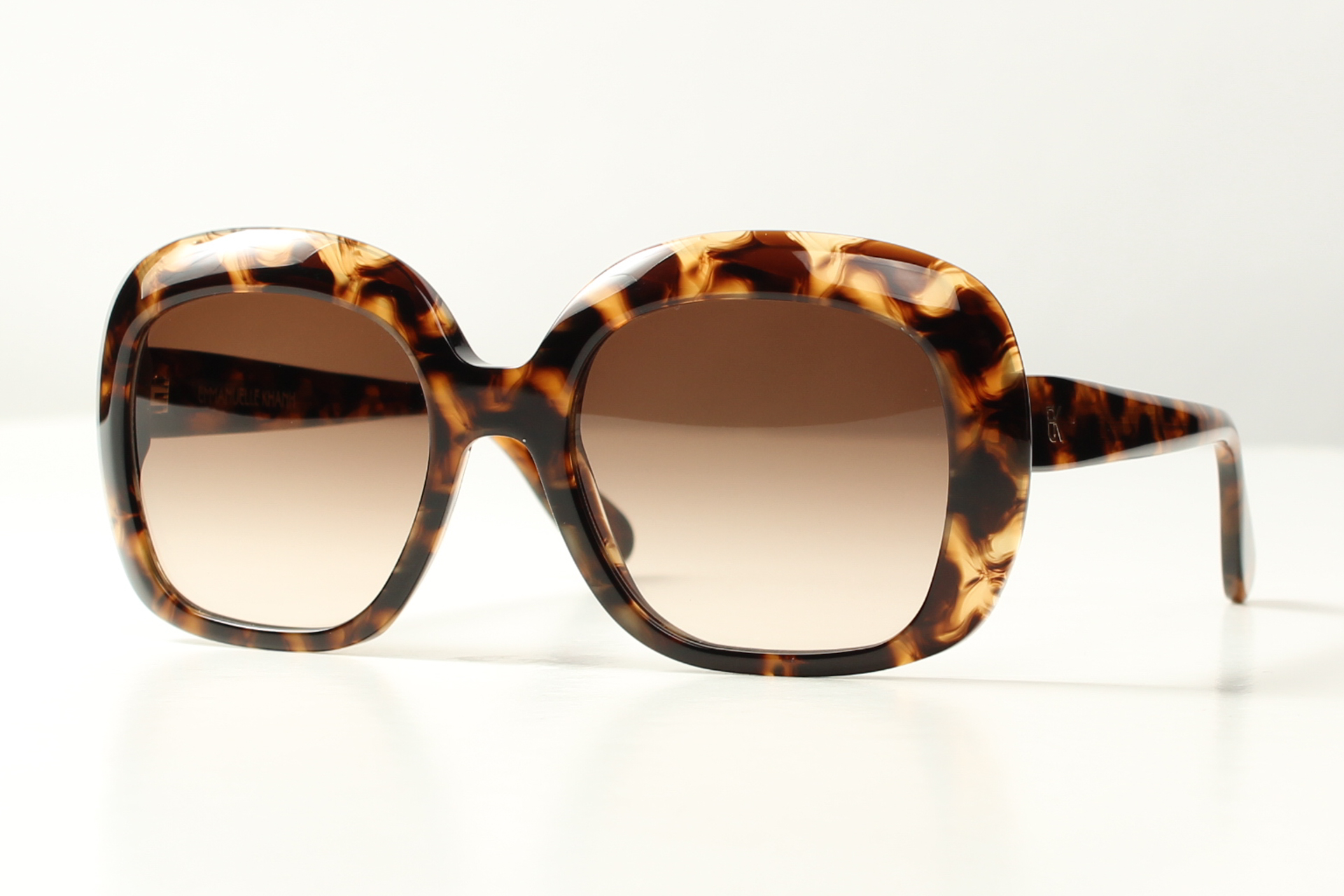 Opvallende oversized zonnebril in bijzonder mooi gevlekt gevlekt acetaat van Emmanuelle Khanh.