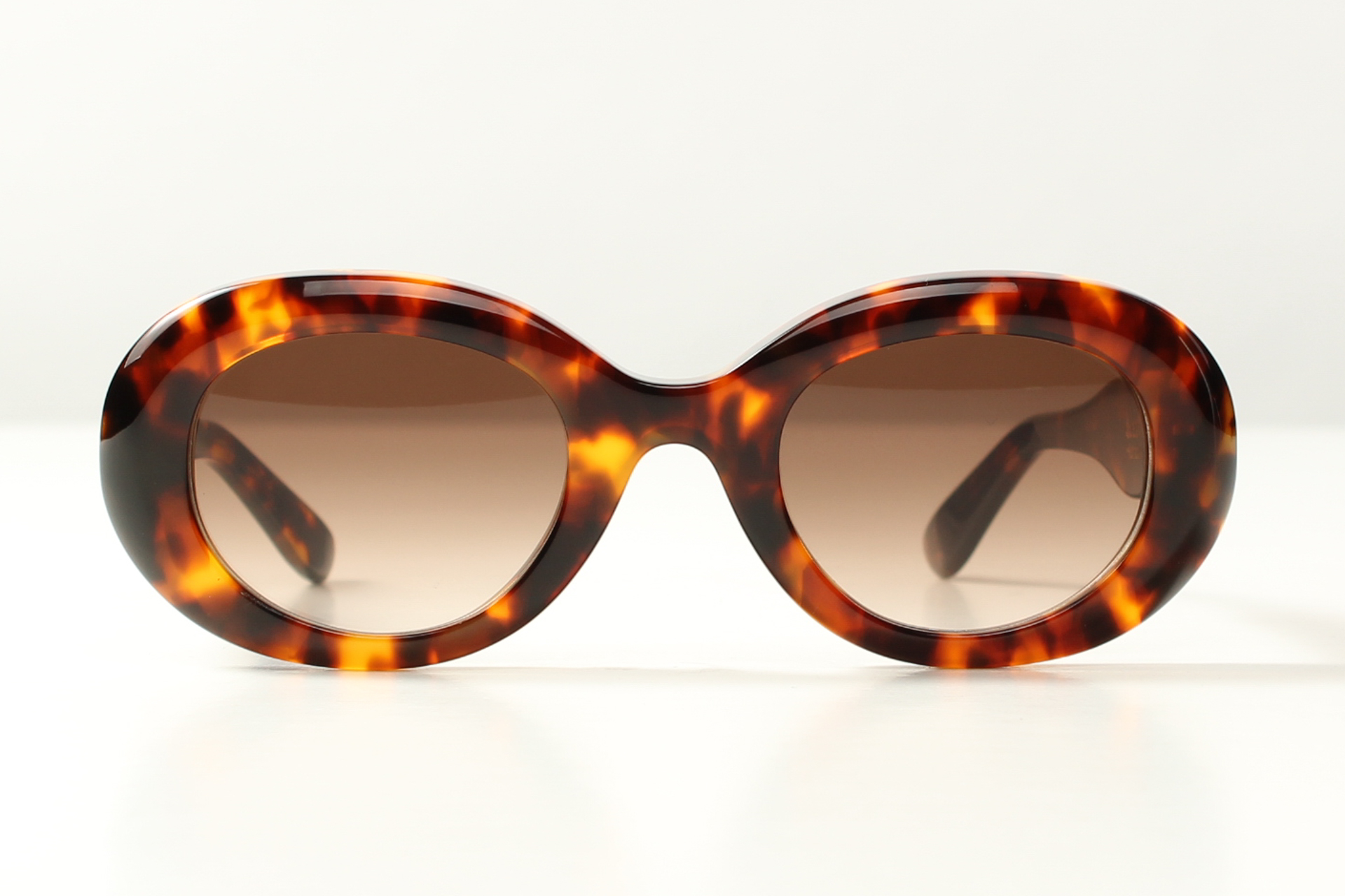 Opvallende zonnebril in tortoise acetaat van Emmanuelle Khanh.