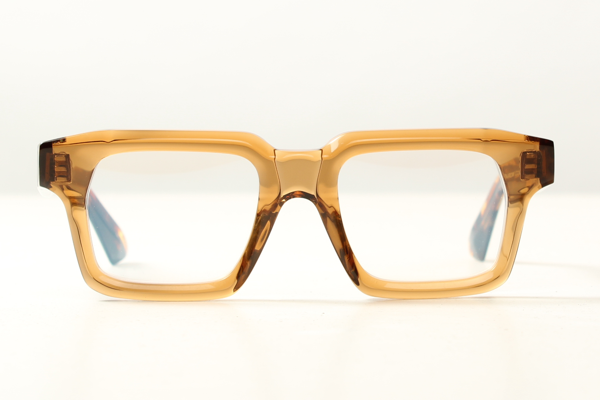 Transparant lichtbruin acetaat montuur van Folc met havana bruine veren.