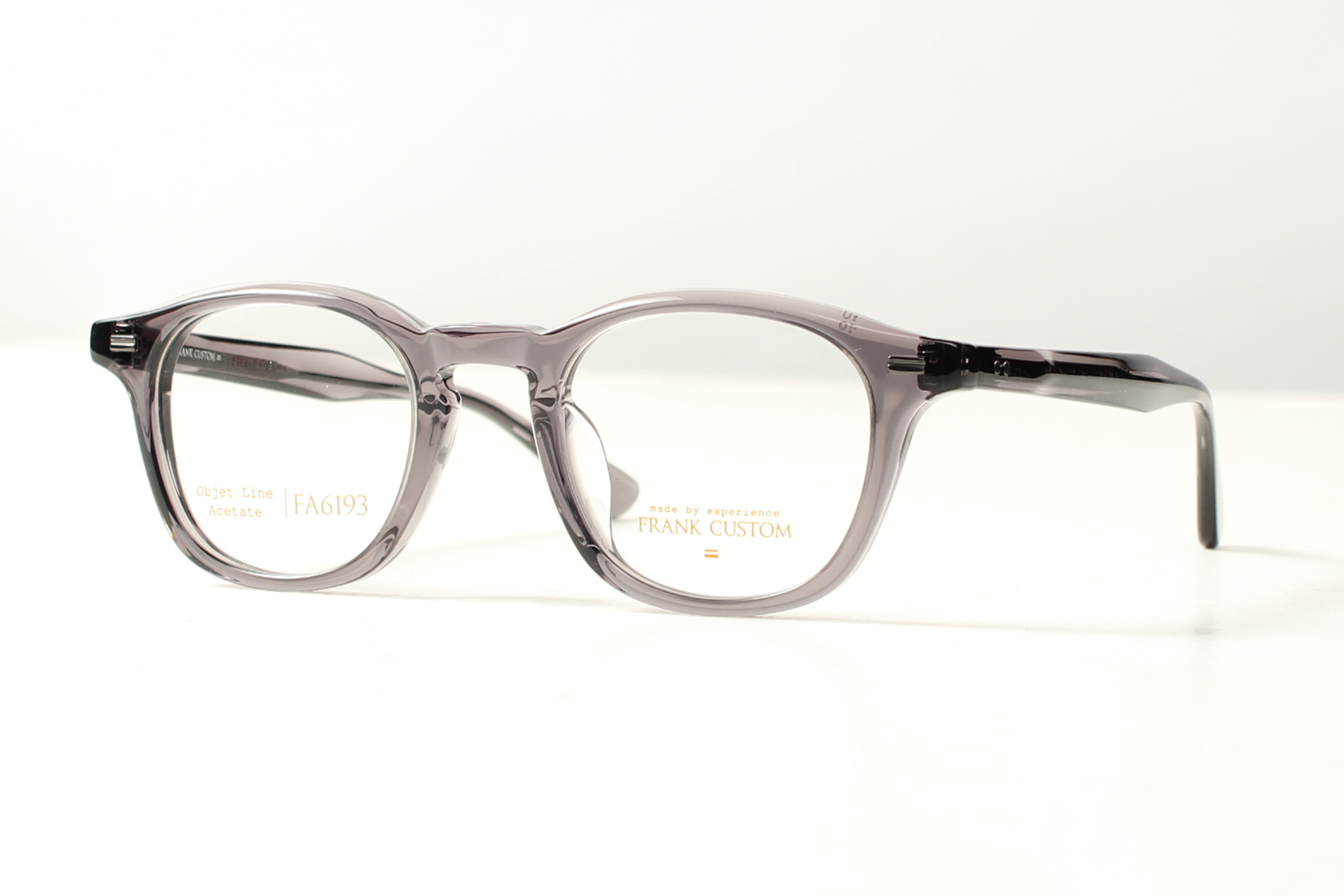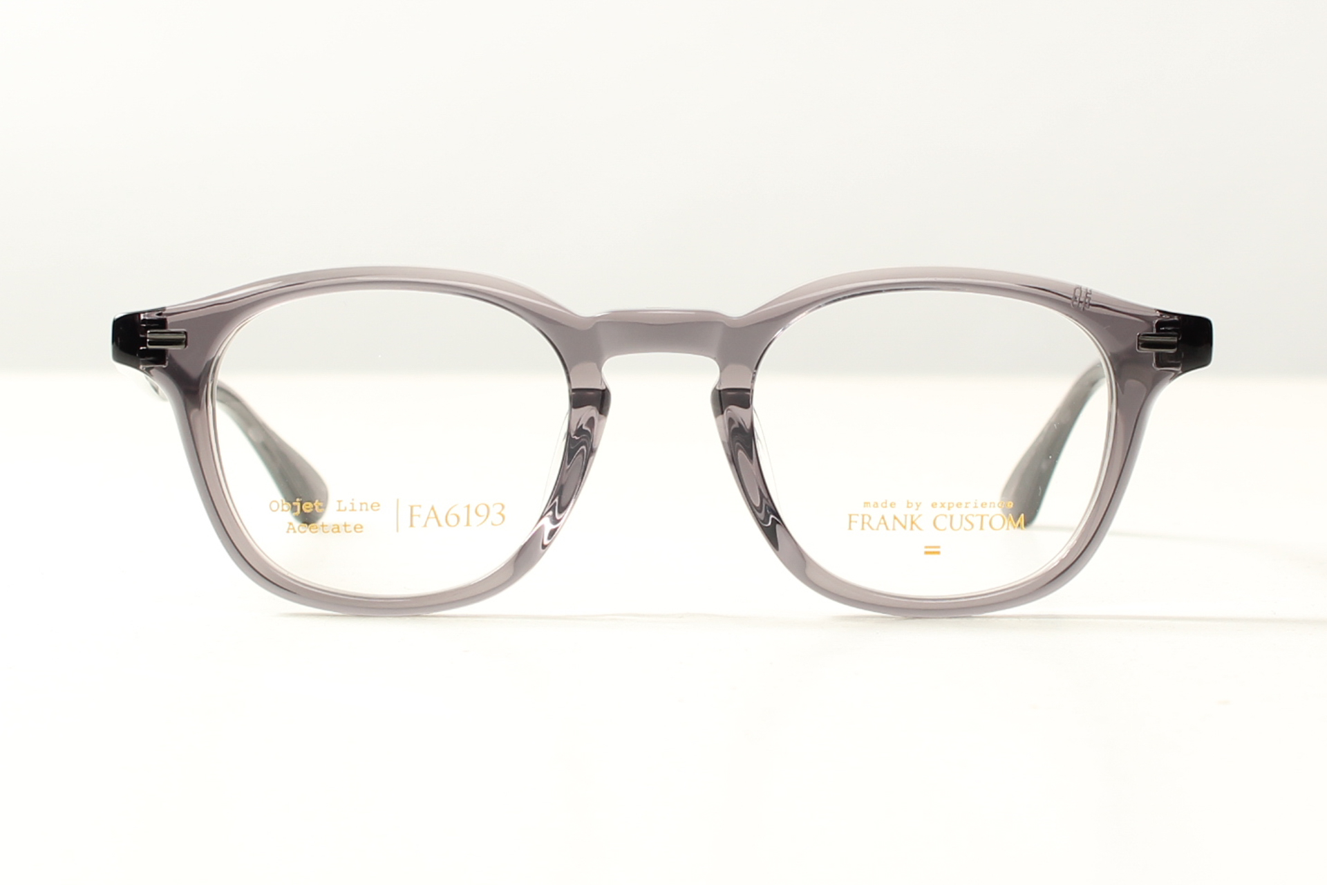 Montuur van Frank Custom, transparant grijs acetaat montuur met antraciet titanium binnenveer.