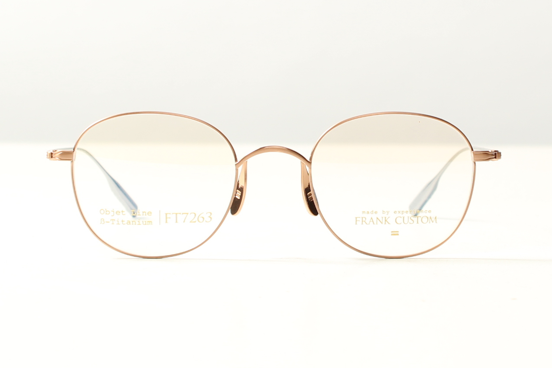 Montuur van Frank Custom, panto-ronde vorm in rose goud double titanium montuur