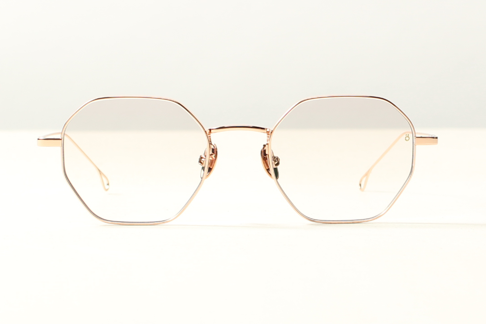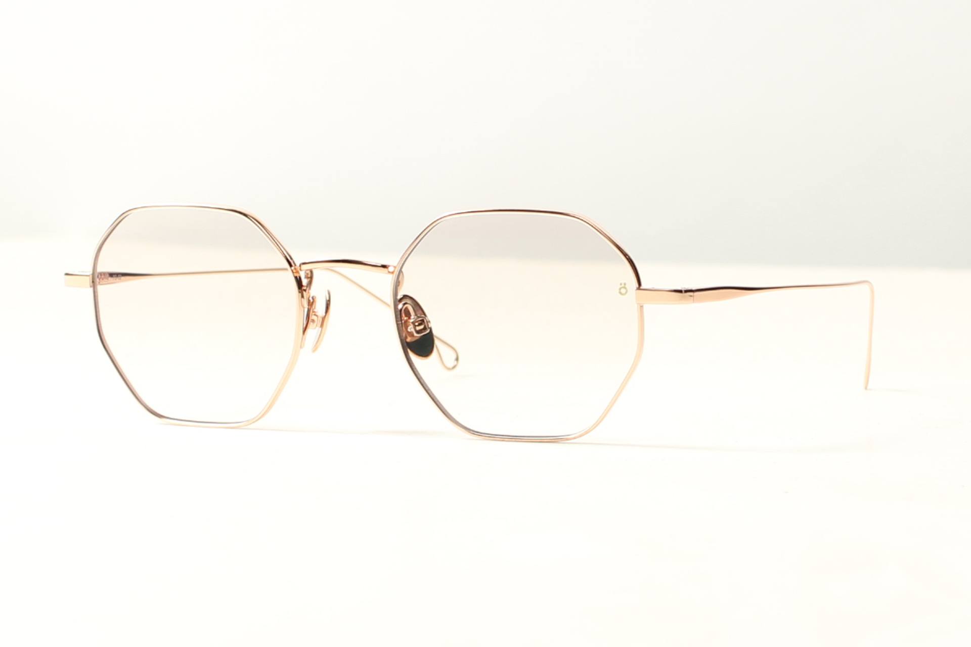 Titanium montuur uit de Precious Objects-collectie van Götti. Hexagonale vorm. Precious Rose goud double.