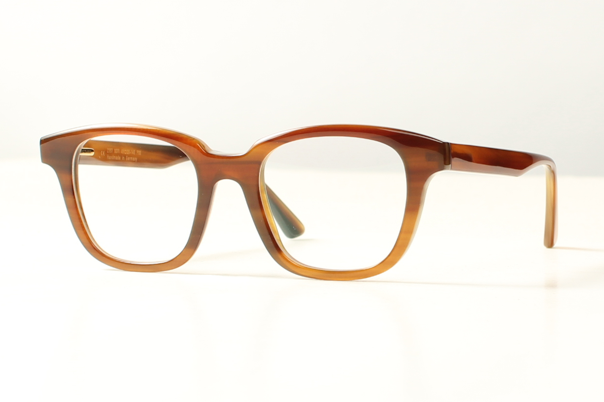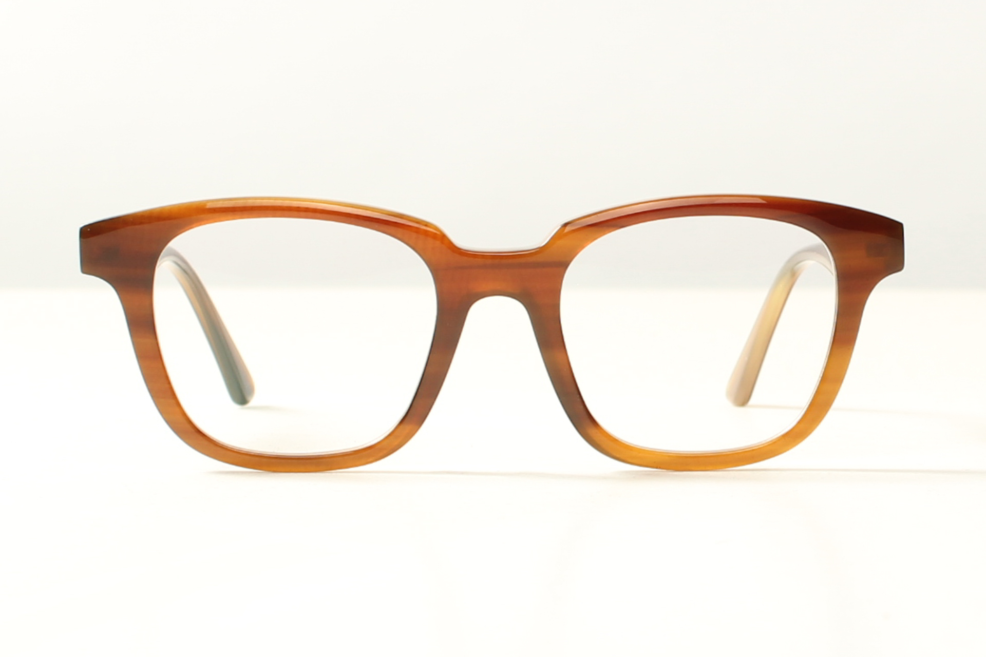 Hoffmann Natural Eyewear. Lichtblond gevlamd buffelhoorn. Hoogglanzend gepolijst, ambachtelijk vakmanschap handgemaakt in Duitsland.
