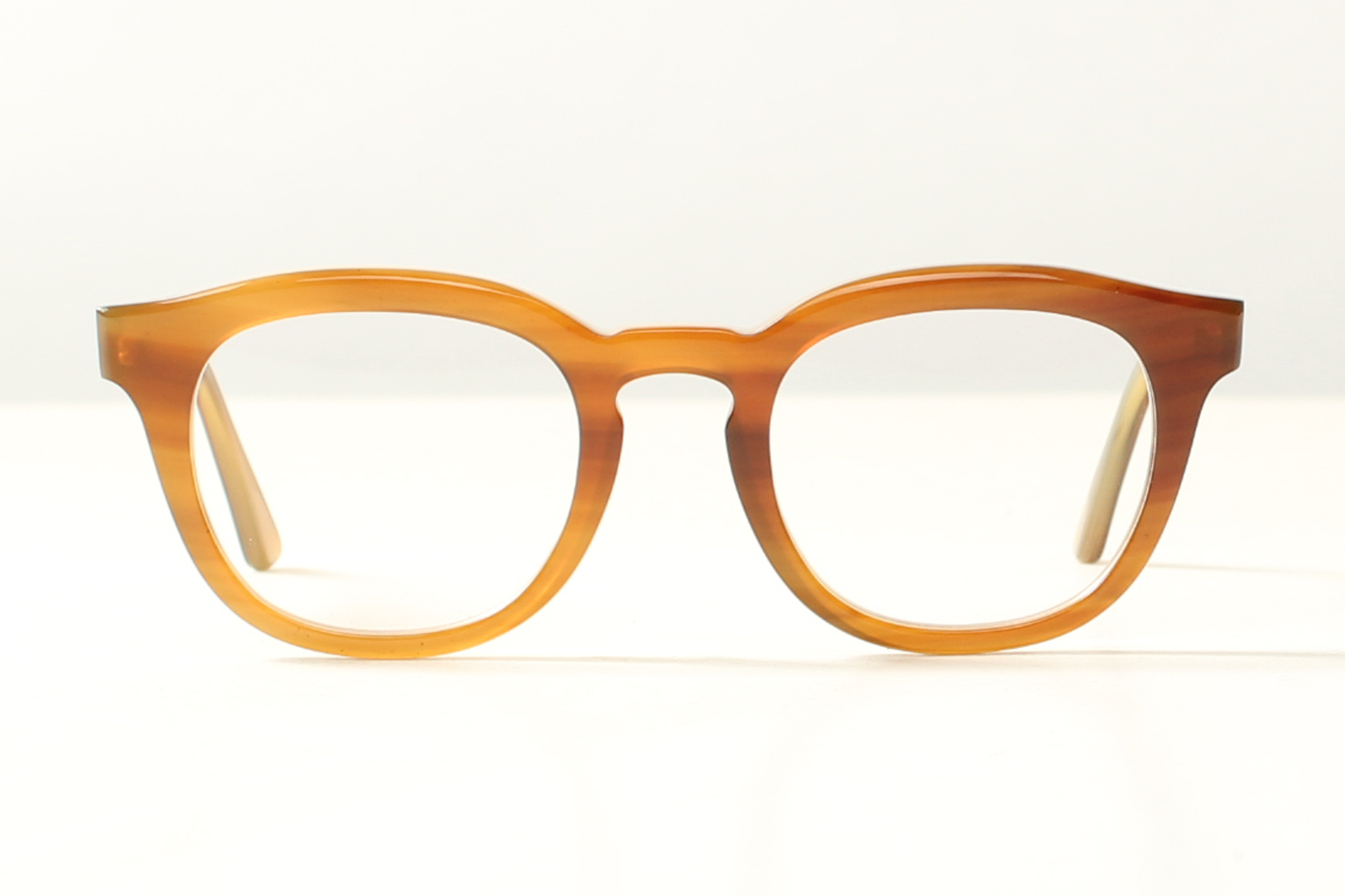 Hoffmann Natural Eyewear. Lichtblond gevlamd buffelhoorn. Hoogglanzend gepolijst, ambachtelijk vakmanschap handgemaakt in Duitsland.