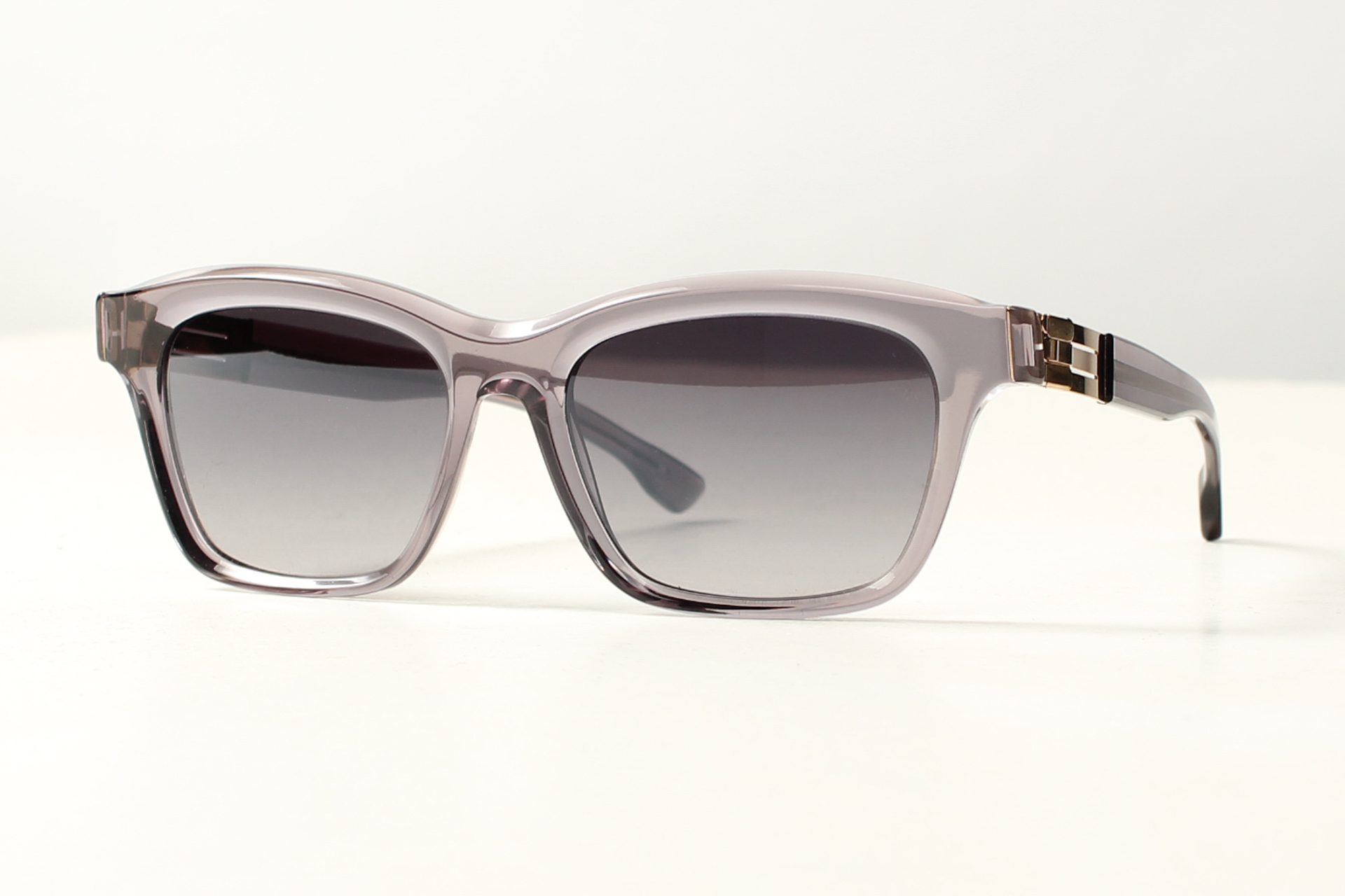 IC-Berlin zonnebril. Frame gemaakt van glanzend grijs acetaat en een kenmerkend schroefloos scharnier.