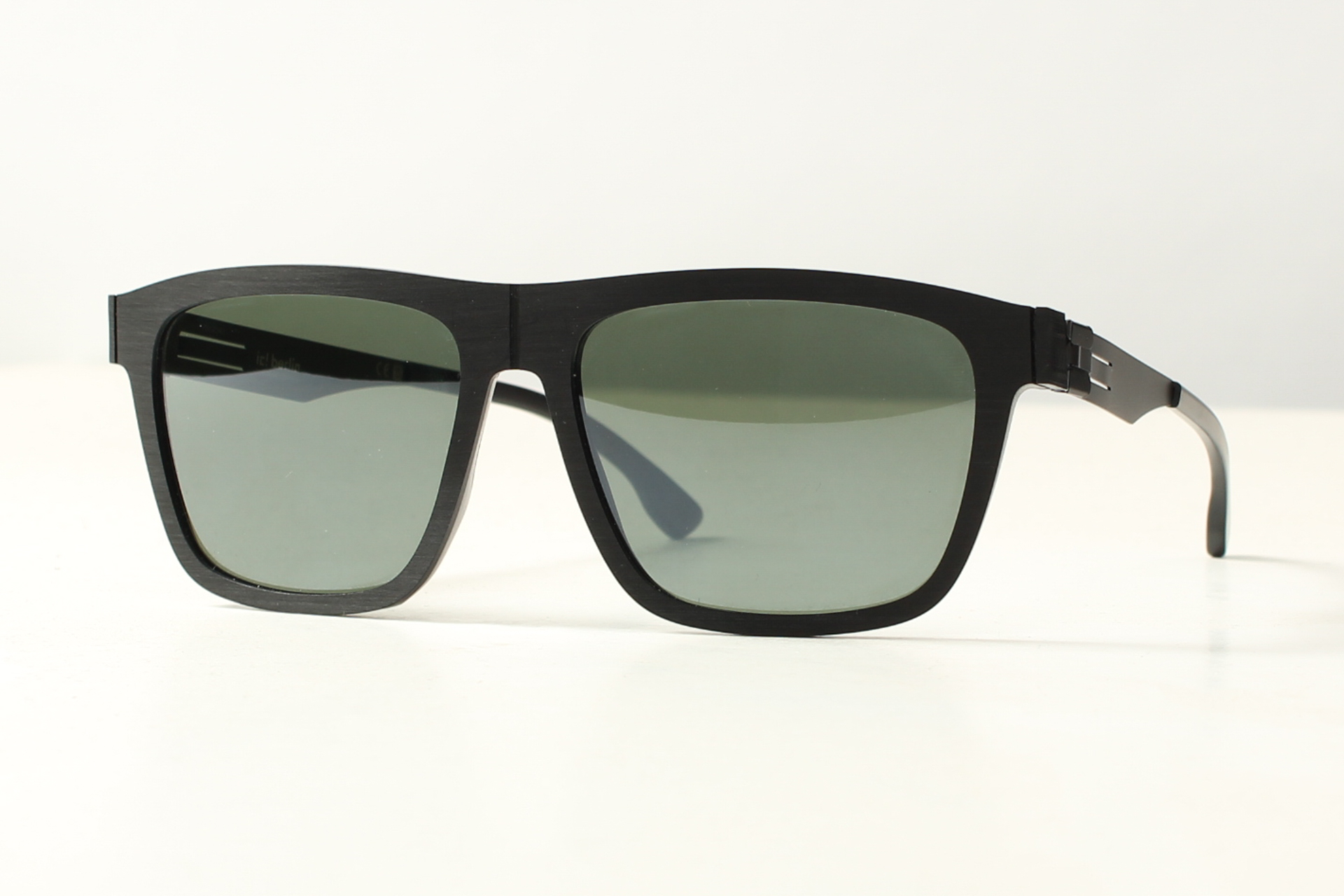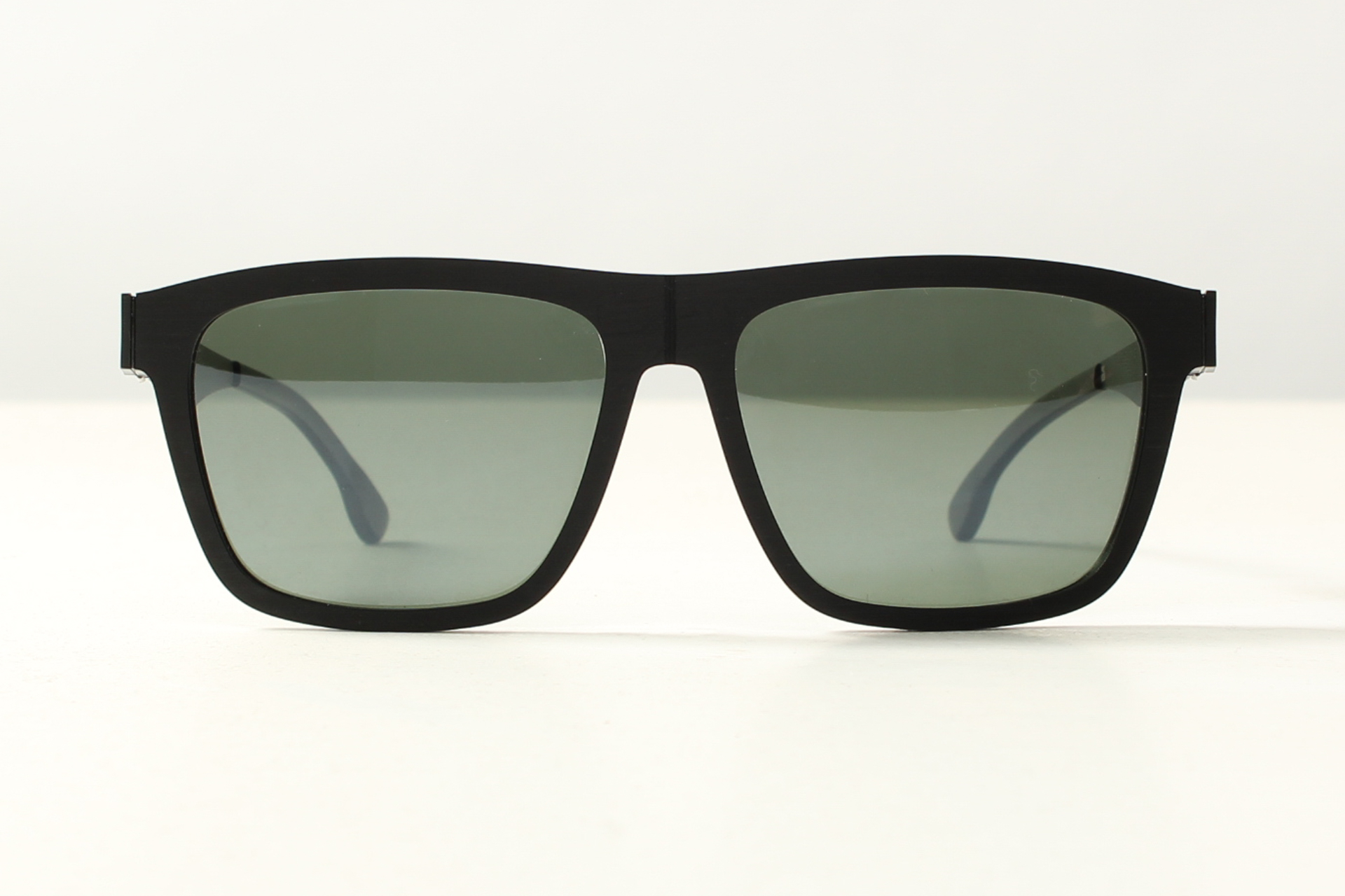 IC-Berlin zonnebril, mat zwart kunststof front met metalen veren gemaakt in en supersterk staal met kenmerkend schroefloos scharnier.