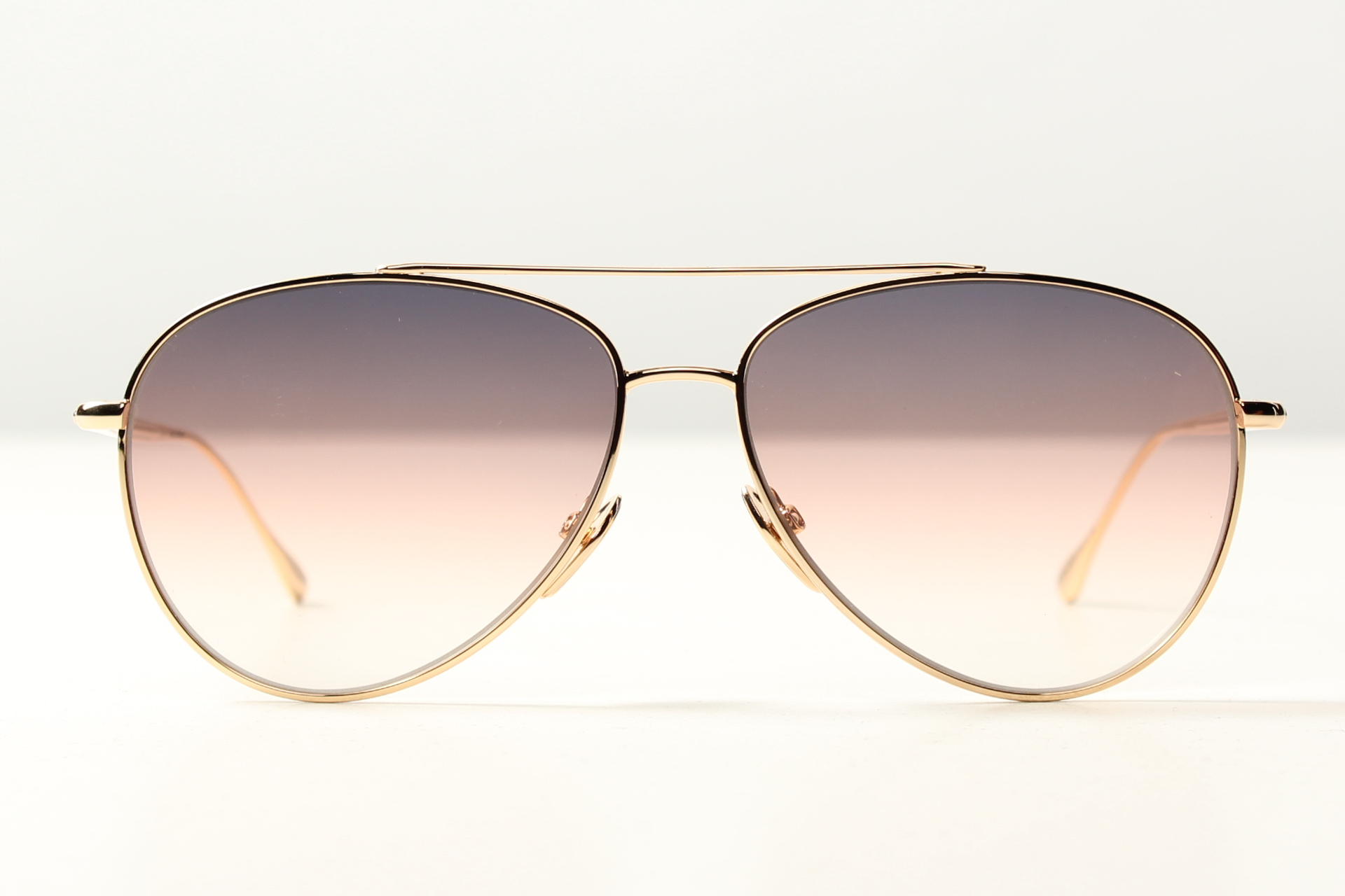 Geelgoud Isabel Marant montuur met rose/paarse degrade glazen in aviator model.