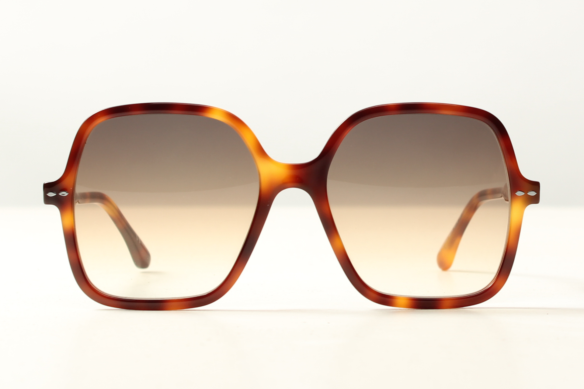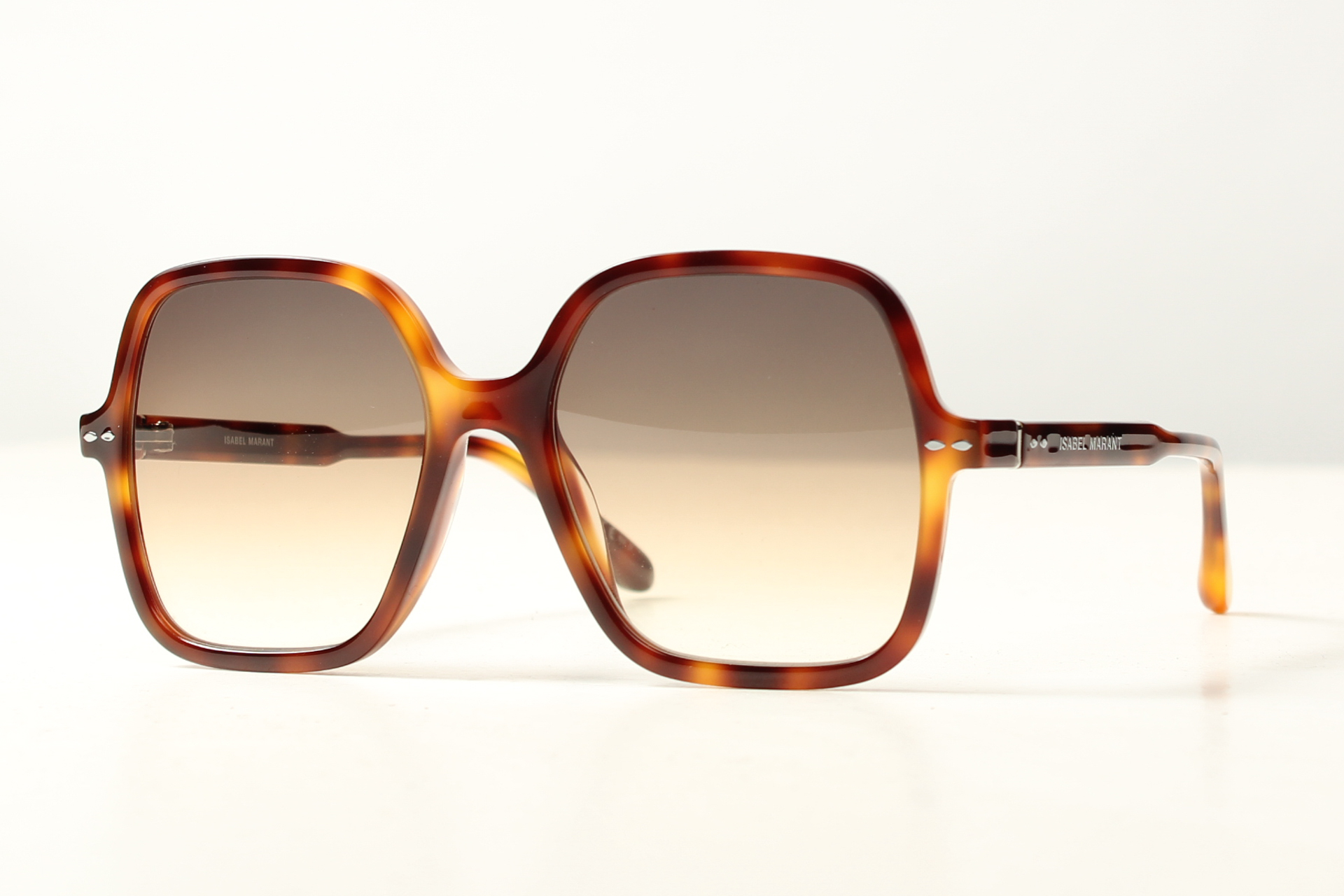 Isabel Marant zonnebril in gevlamd havanna acetaat met bruin degrade glazen.