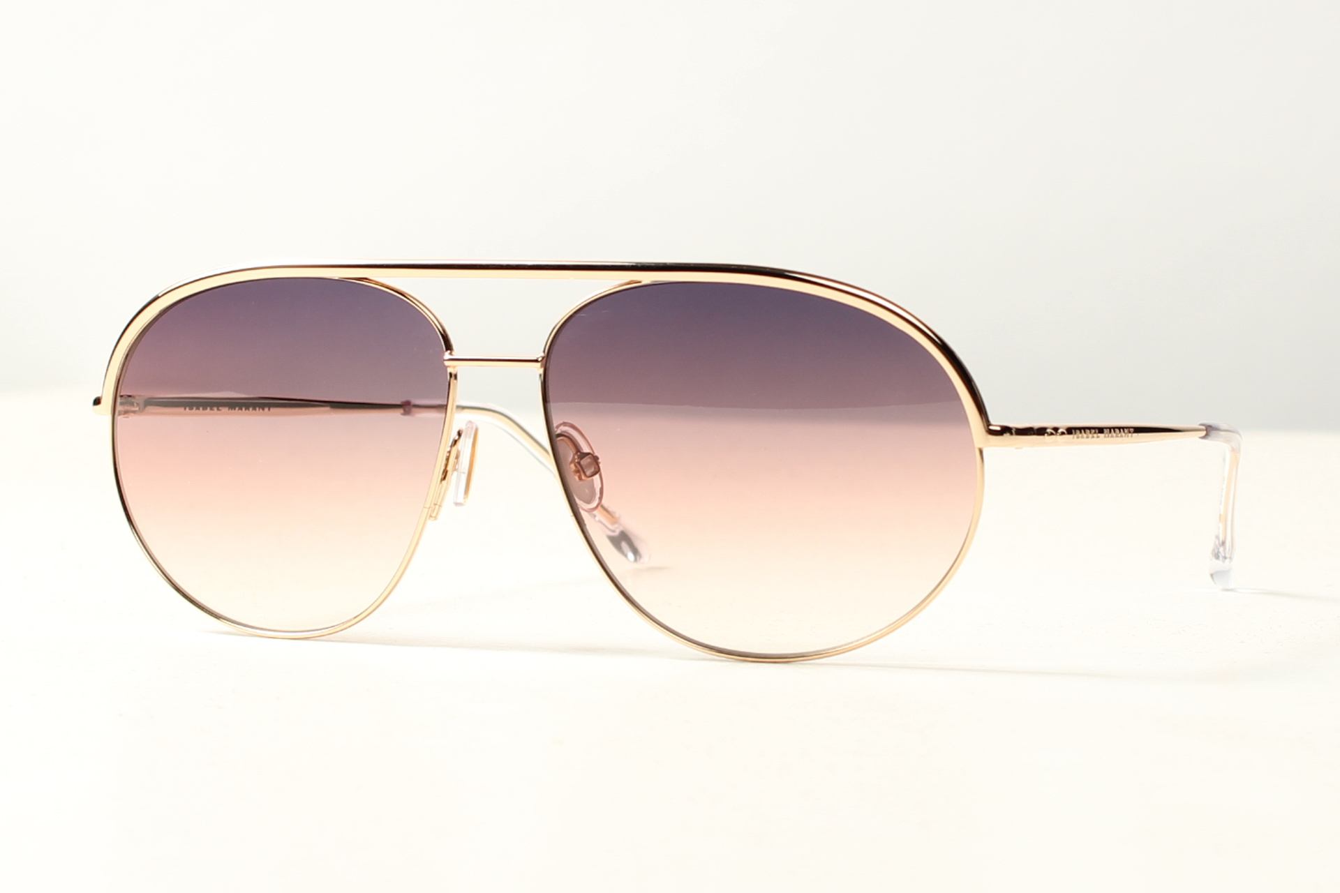 Isabel Marant zonnebril. Rose goud double montuur in pilotenmodel met paars/ rose degrade glazen.