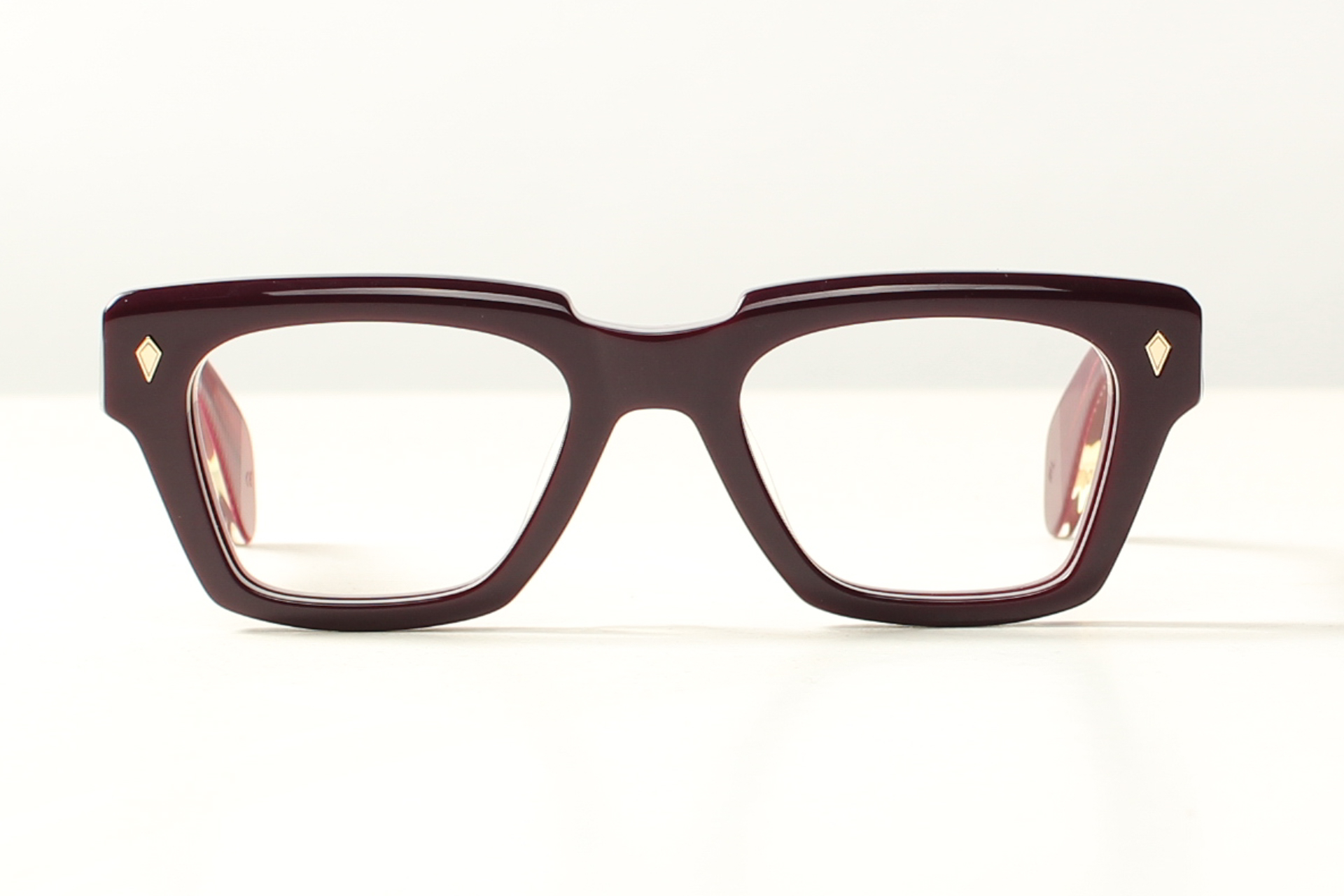 Het acetaat is donkerrood aan de voorkant en feller rood aan de binnenkant. Handgemaakt en hoogglanzend gepolijst. Dit is ambachtelijk vakmanschap uit Italie.