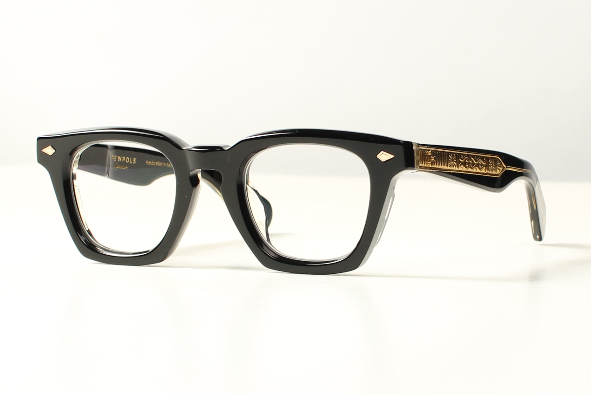 Pewpols, model O”Hooligan is geïnspireerd door de Ierse punkcultuur. Handgemaakt uit zwart acetaat van de hoogste kwaliteit. Hoogglanzend gepolijst. Dit is ambachtelijk vakmanschap uit Italie.
