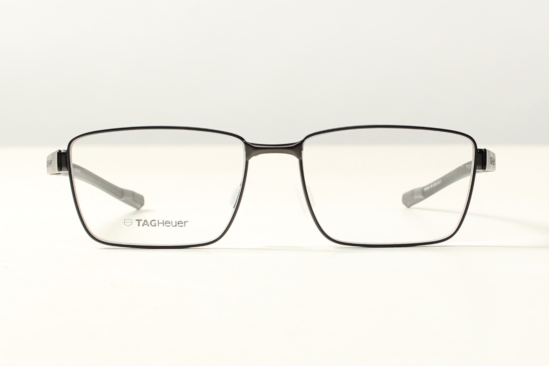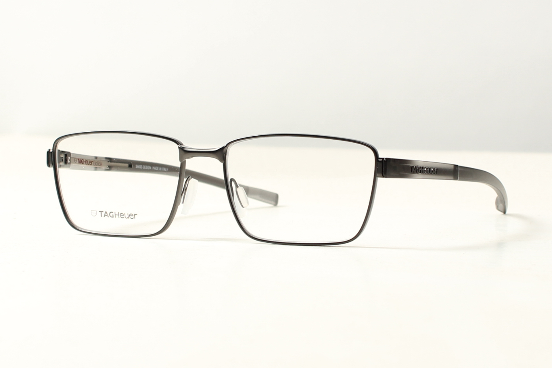 TAG Heuer Eyewear, montuur in antraciet hoogwaardig titanium. Design met de focus op pasvorm en comfort.
