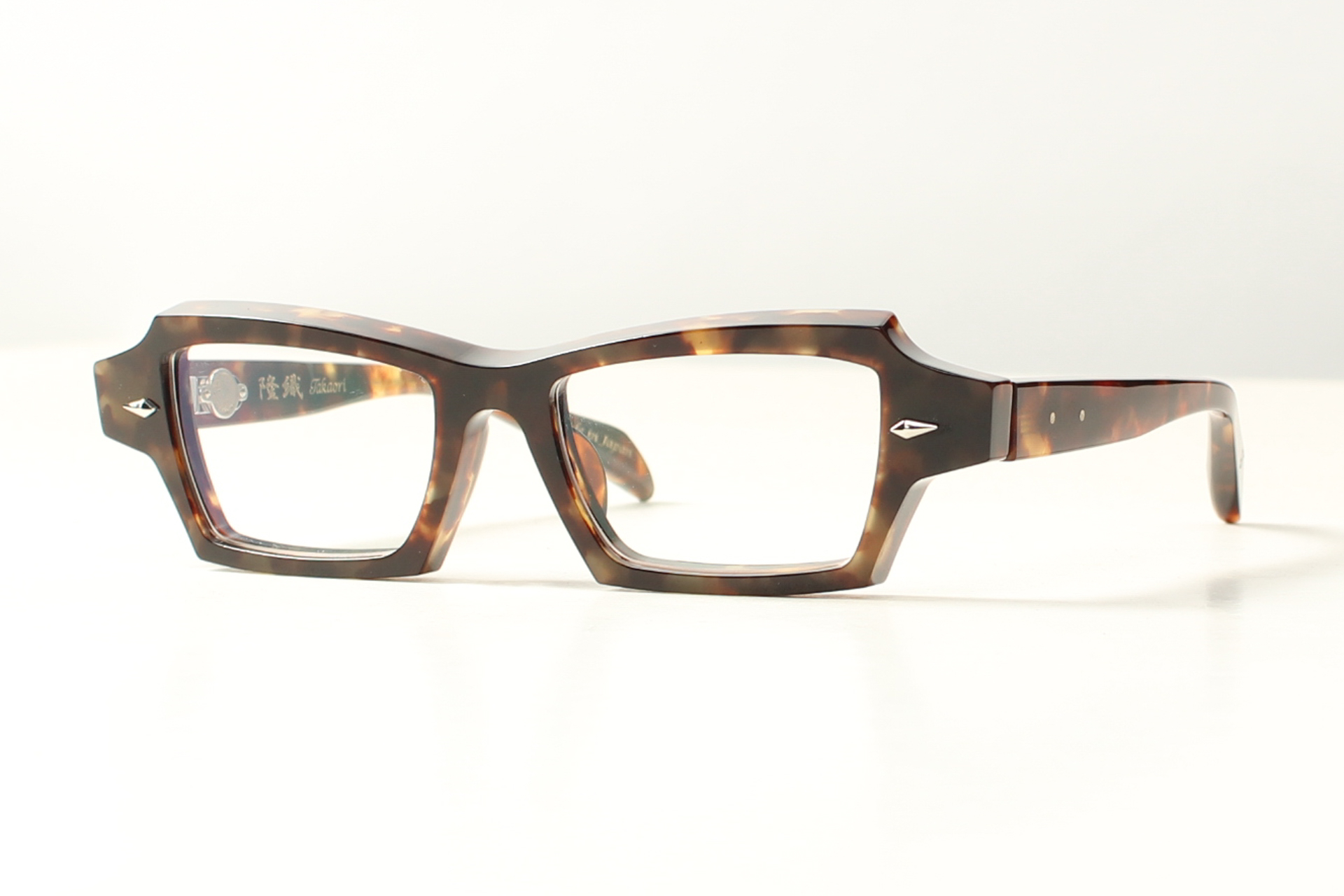 Prachtig montuur van Takaori in havanna-bruin gevlamd acetaat. Bijzonder fraai klinkscharnier en handgemaakt in Japan door meesterlijke ambachtslieden.