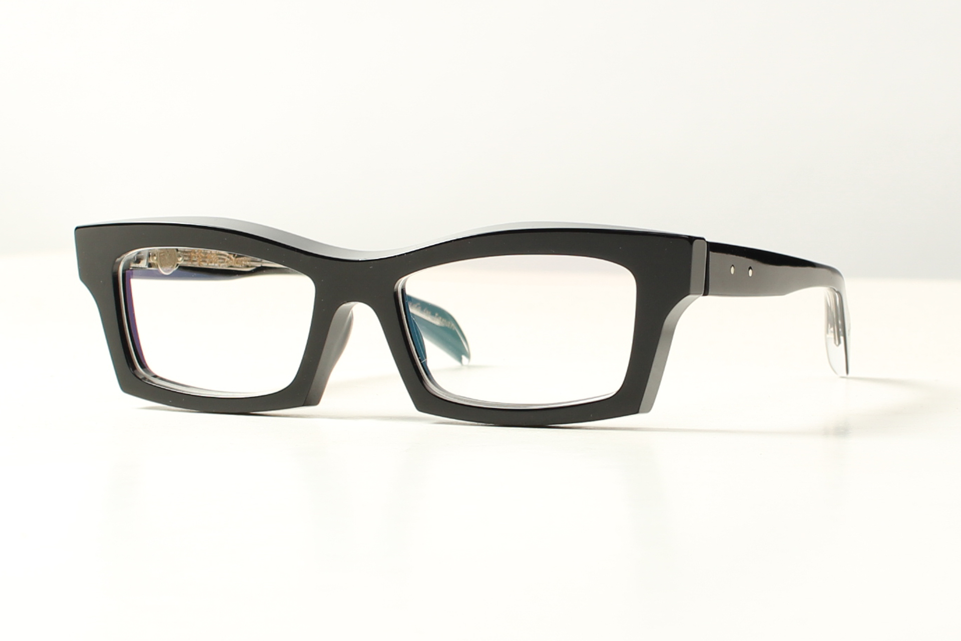 Prachtig rechthoekig montuur van Takaori in glanzend zwart acetaat. Bijzonder fraai door de schuine facetten. Handgemaakt in Japan door meesterlijke ambachtslieden