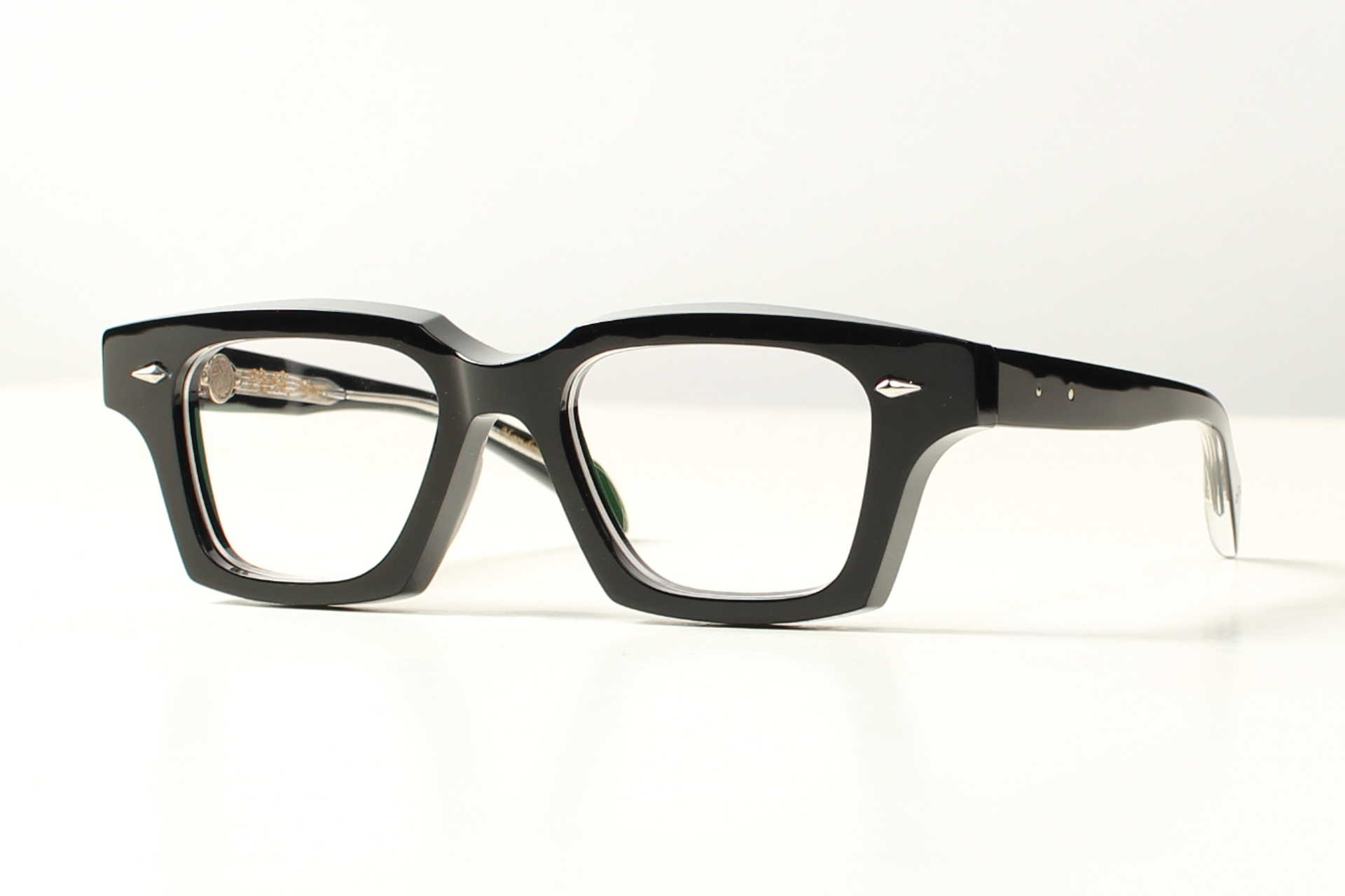 Prachtig montuur van Takaori in hoogglanzend zwart acetaat. Bijzonder fraai klinkscharnier en handgemaakt in Japan door meesterlijke ambachtslieden