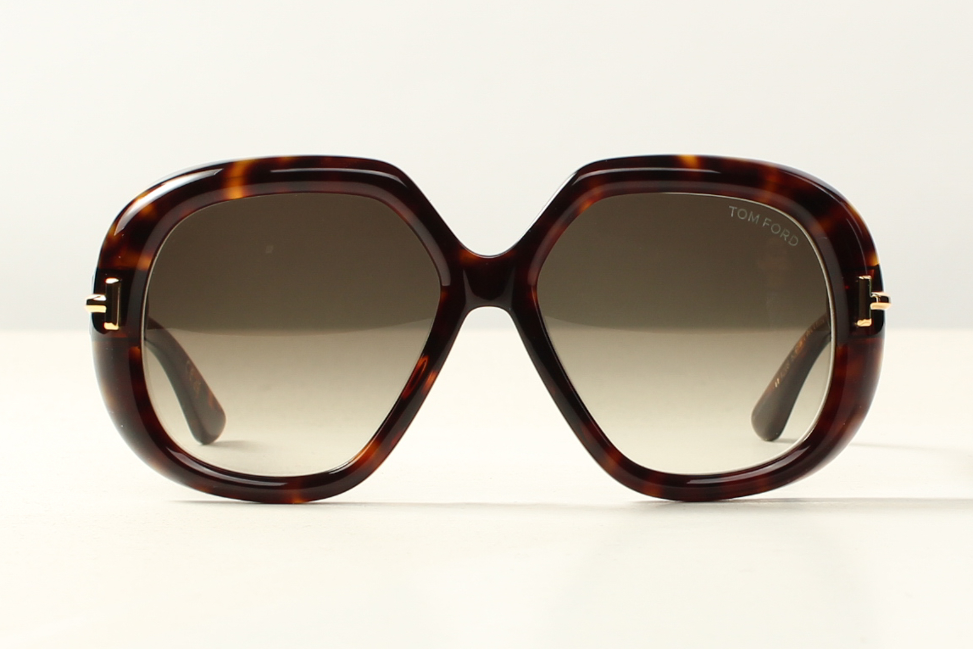 Zonnebril van Tom Ford uit de Icon collectie in donker gevlamd acetaat in een stoer vintage vorm met bruin degrade glazen.