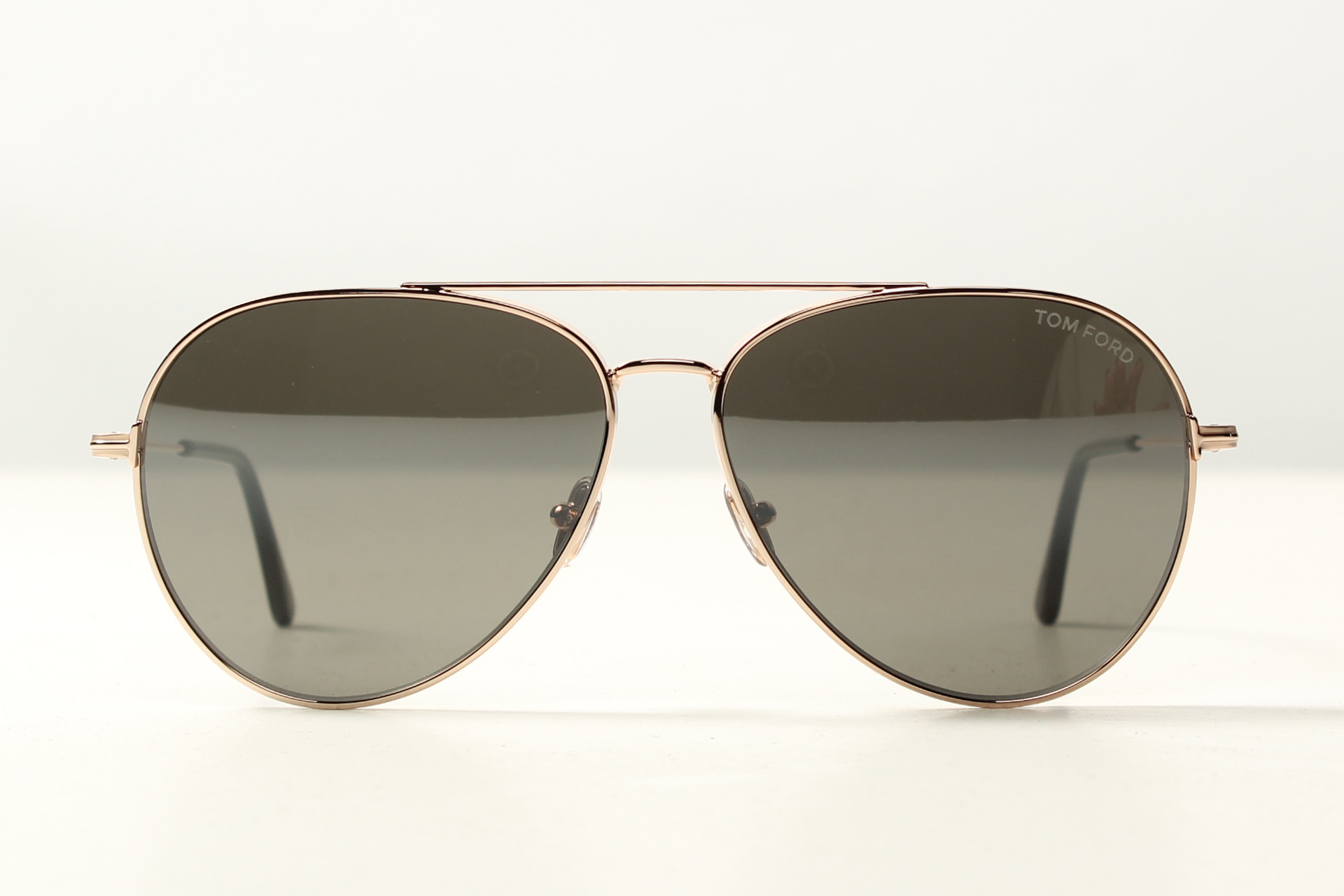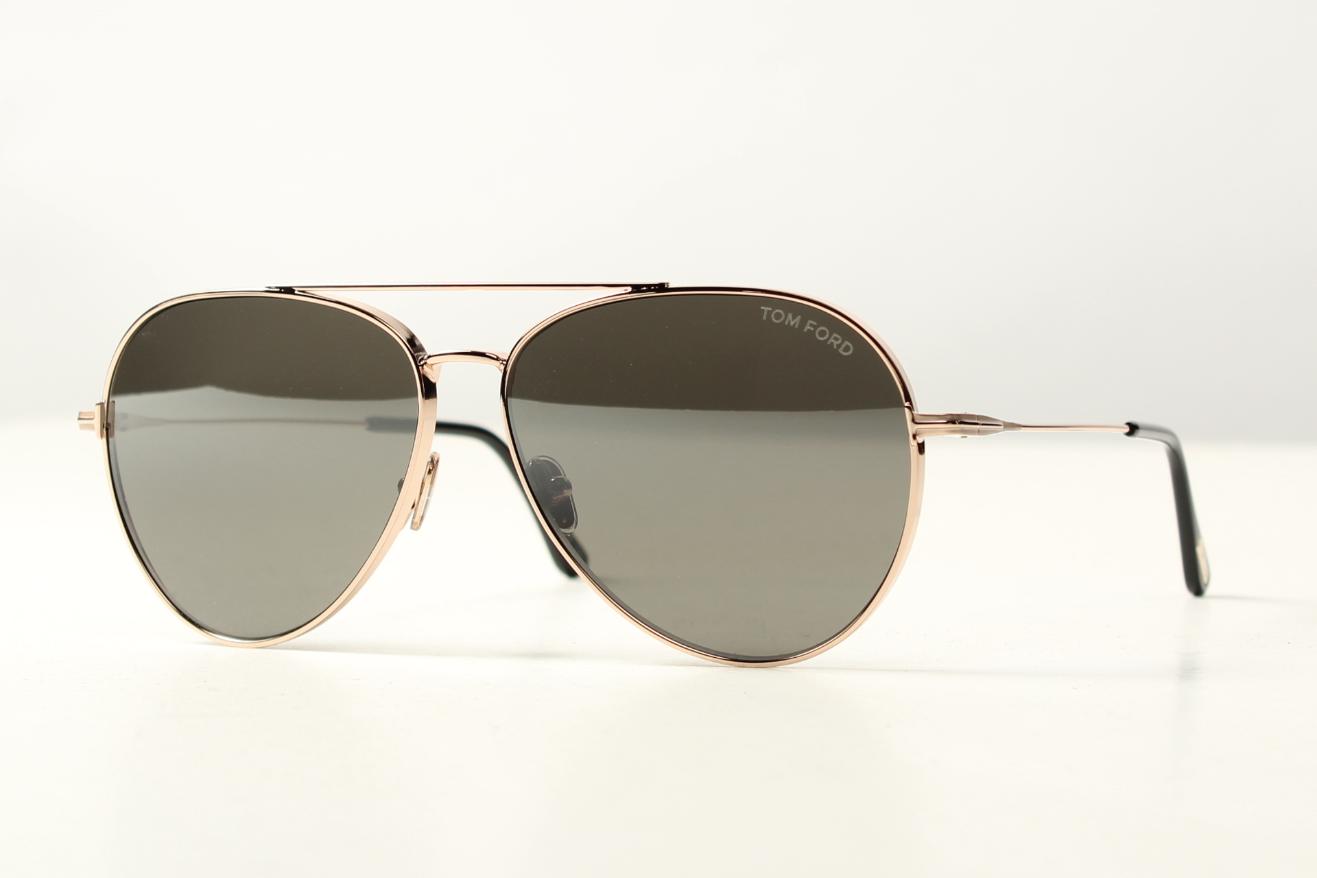 Aviator zonnebril van Tom Ford in rose goud met grijs/ groene glazen.
