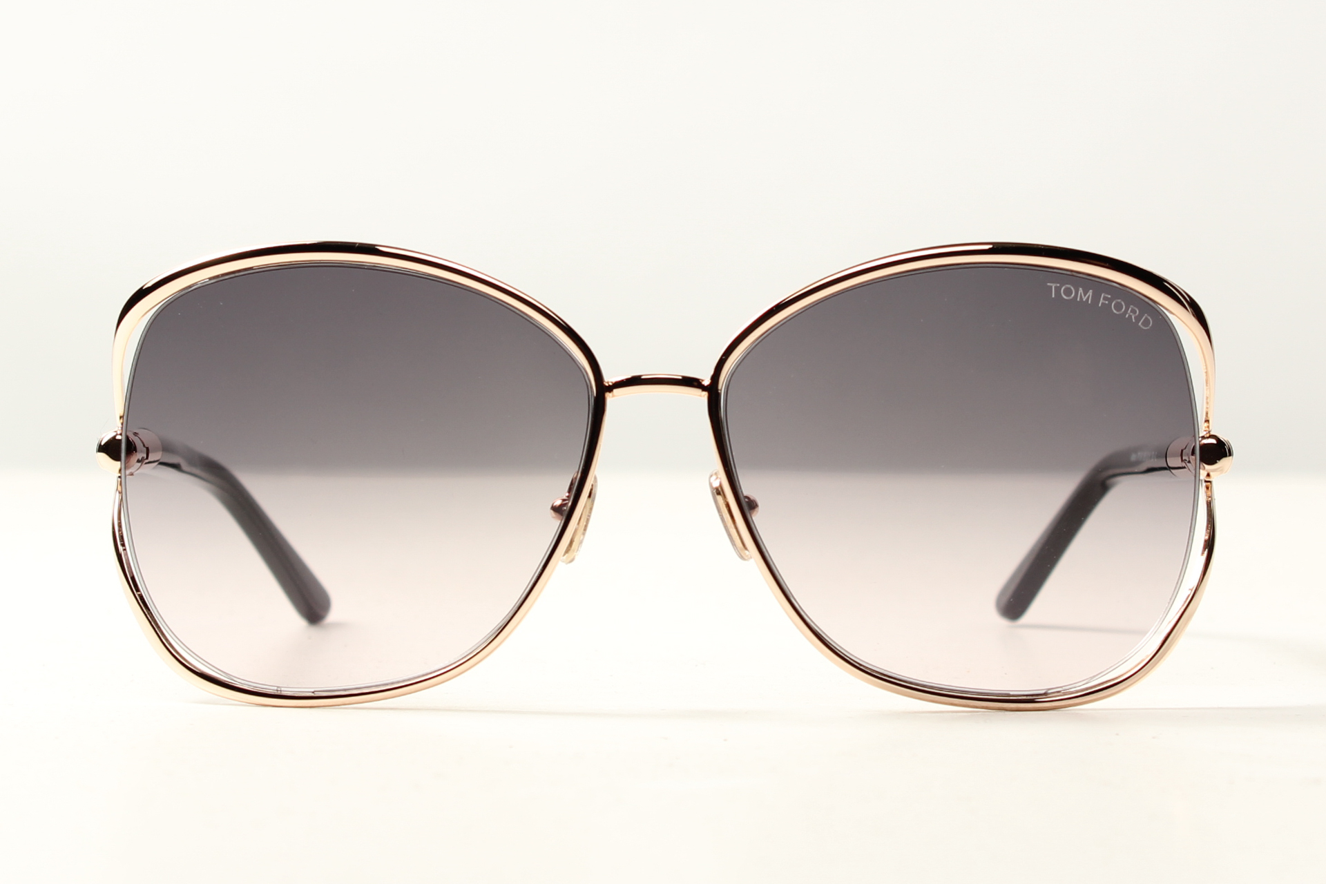 Oversized zonnebril van Tom Ford in goud double met grijs degrade glazen.