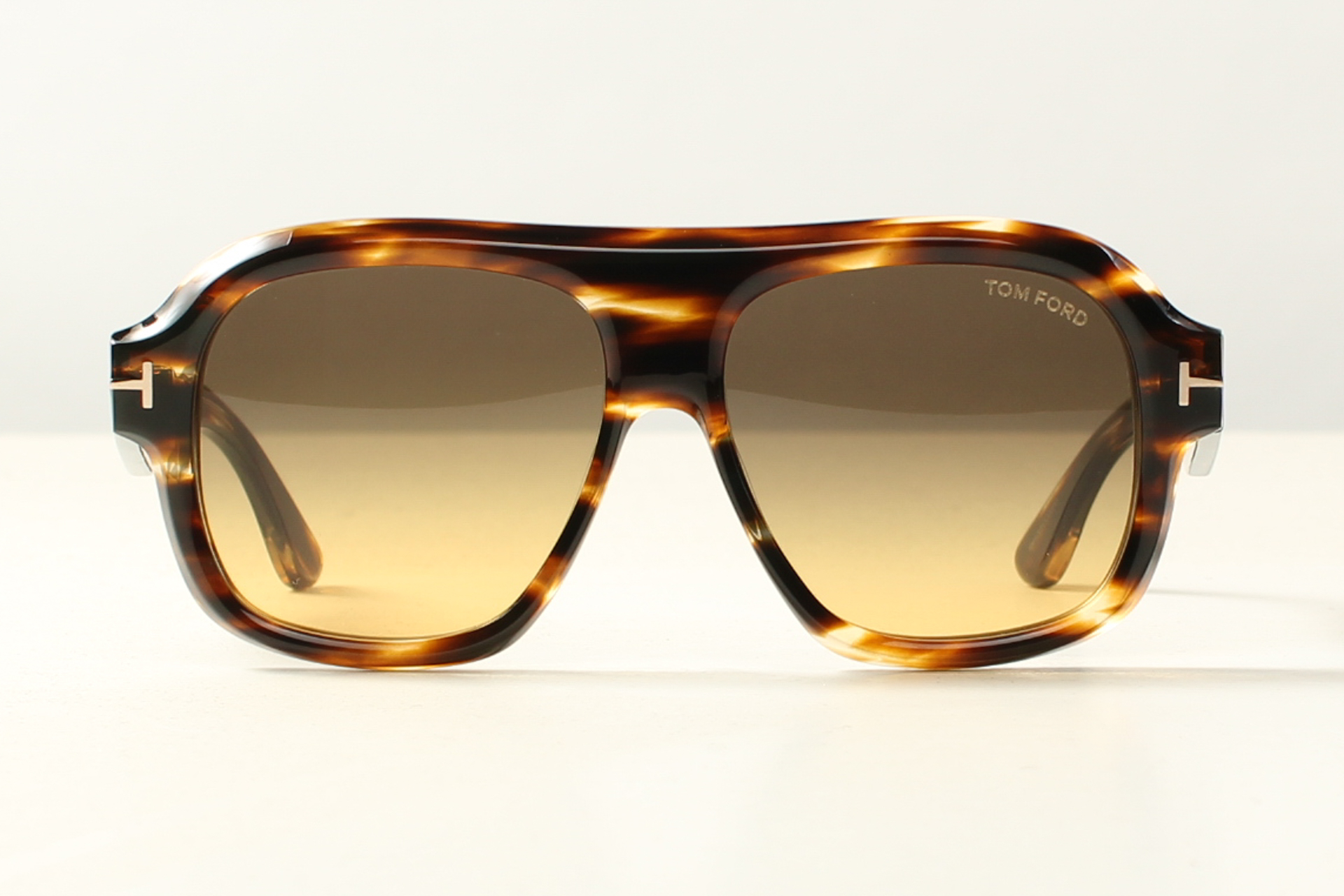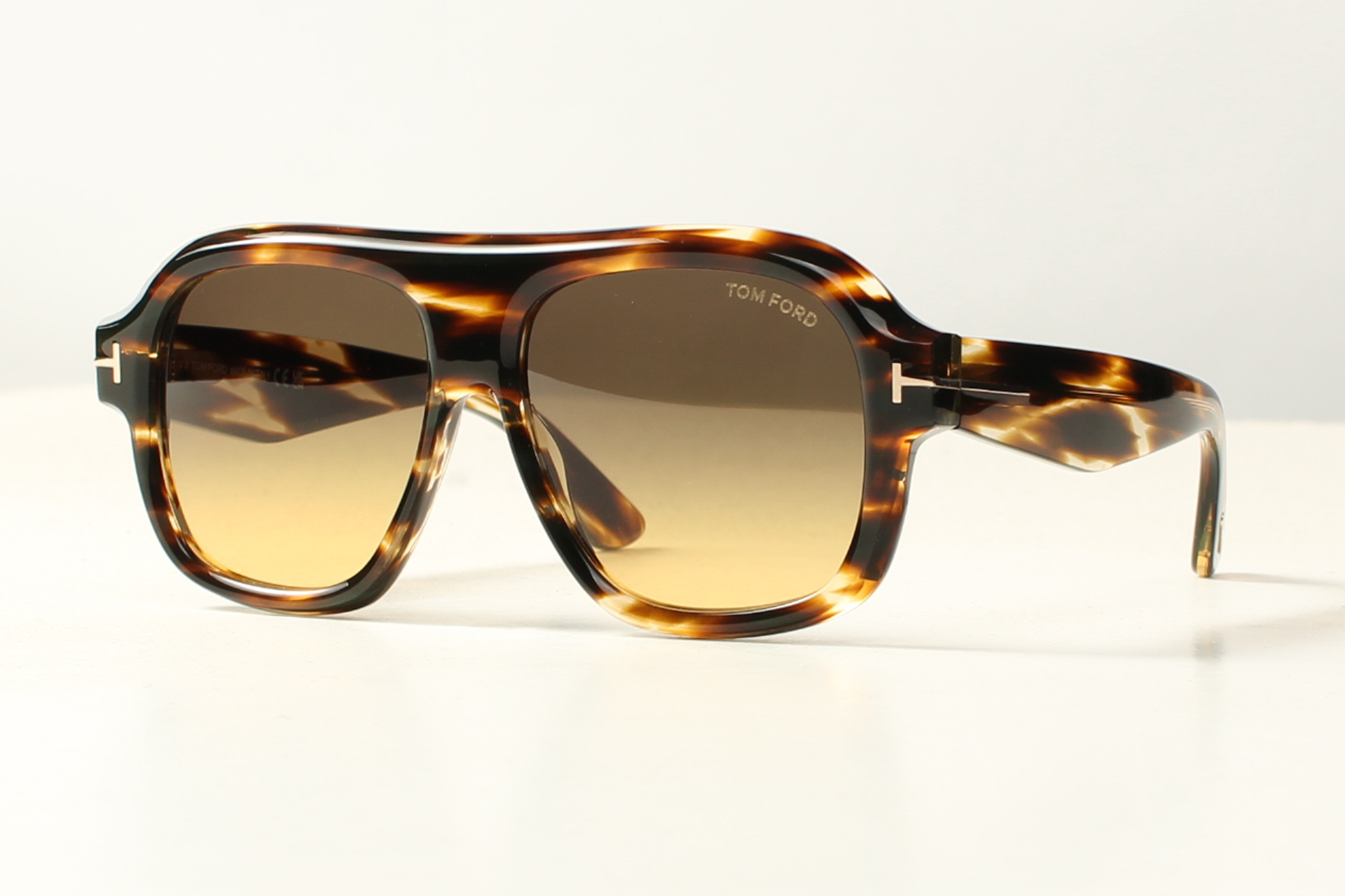 Tom Ford zonnebril gepolijst bruin gevlamd acetaat met bruine degrade glazen.