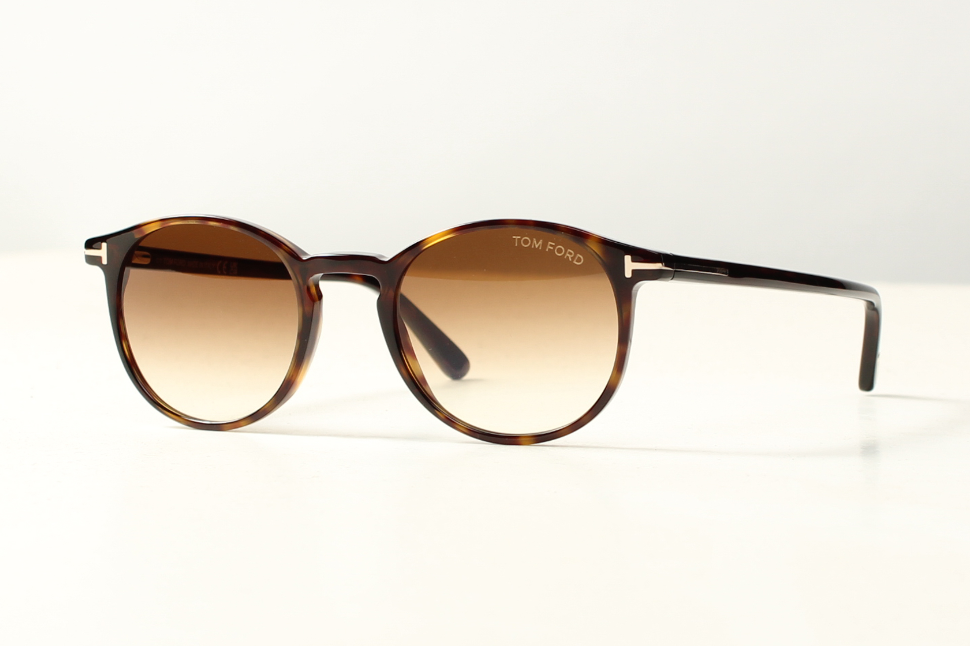 Tom Ford zonnebril gepolijst acetaat met bruin degrade glazen.