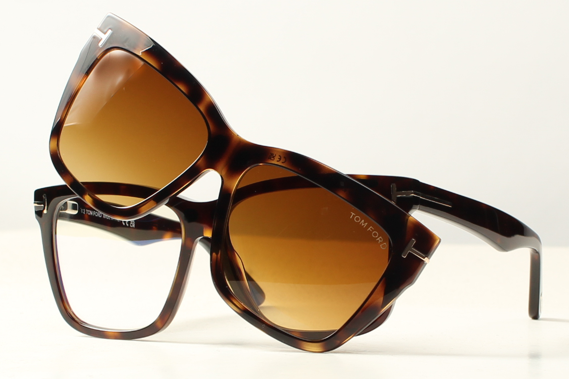 Montuur in donkerbruin acetaat van TOM FORD met bijpassende magnetische zonneclip.