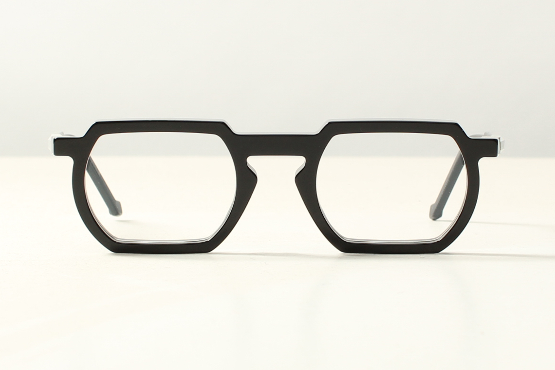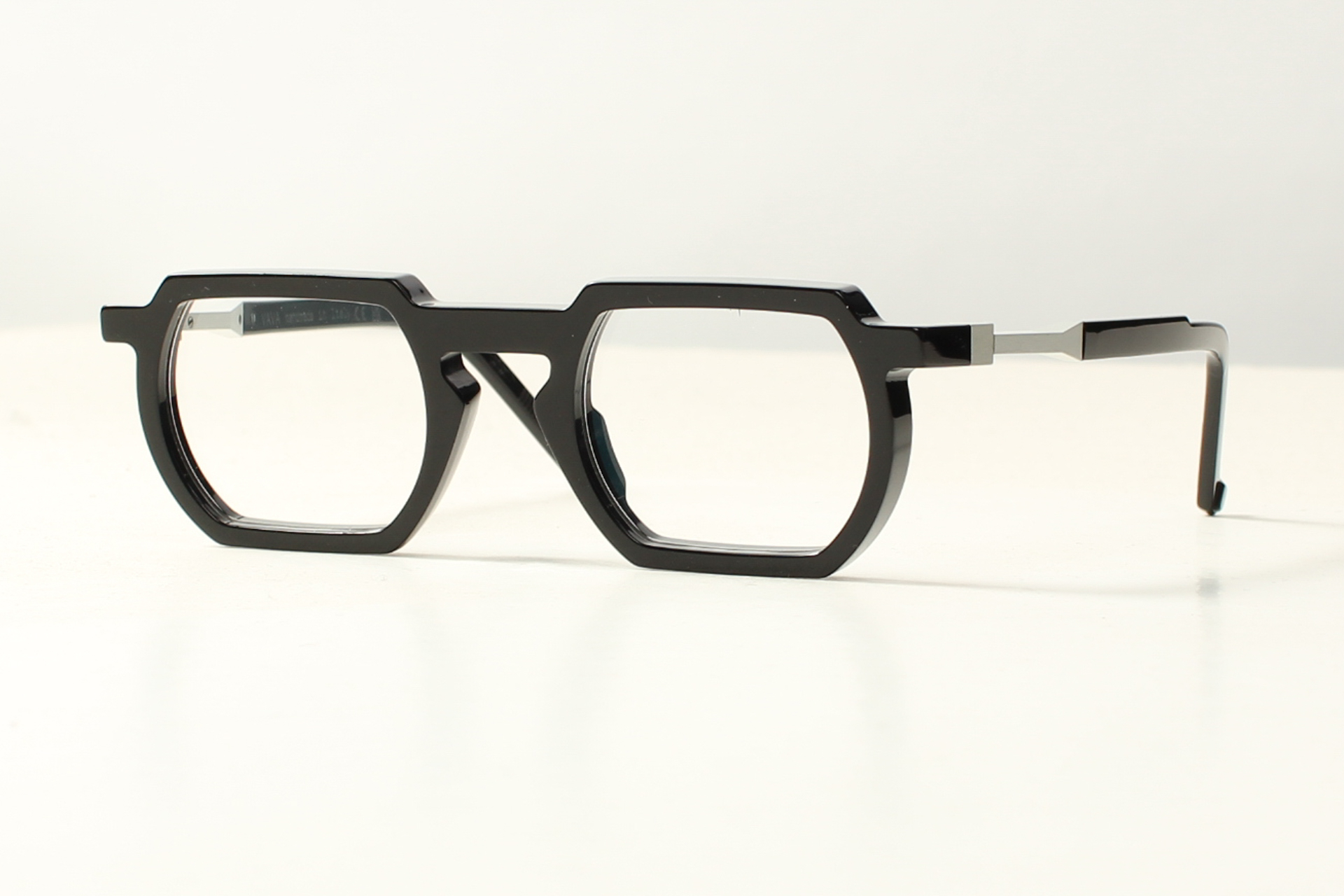 VAVA-montuur in glanzend zwart acetaat. Futuristisch, conceptueel en tijdloos.