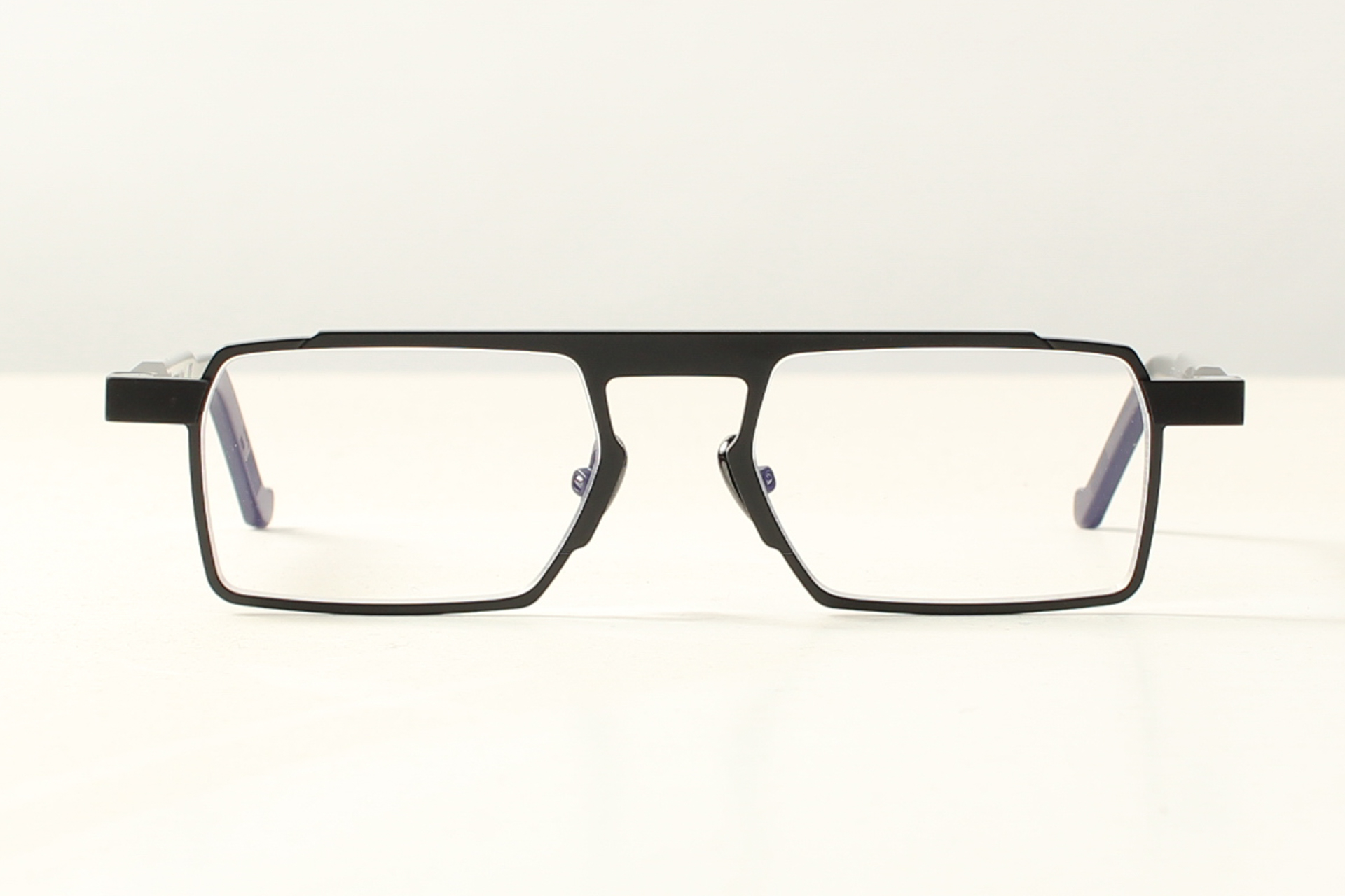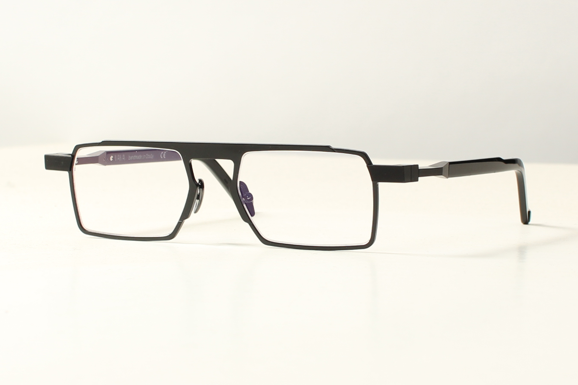 VAVA-montuur, futuristisch, conceptueel en tijdloos. Zwart Aluminium gecombineerd met glanzend zwart acetaat veren.